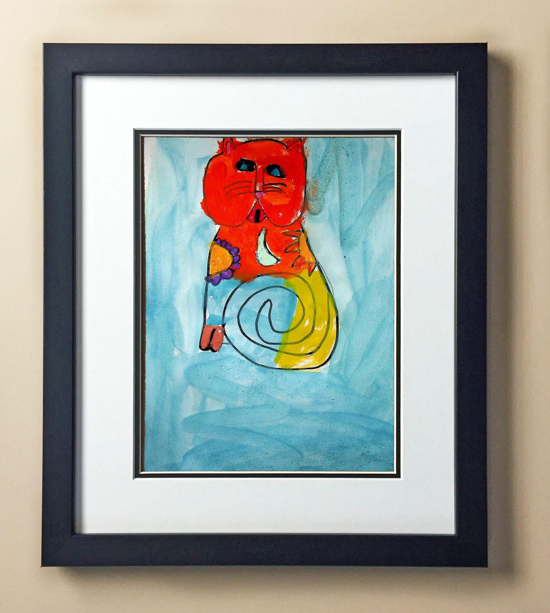 Included with the purchase is the Students Artwork, Frame, double matboard, shatter proof plexiglass, and a ready to hang backerboard with turnbuttons