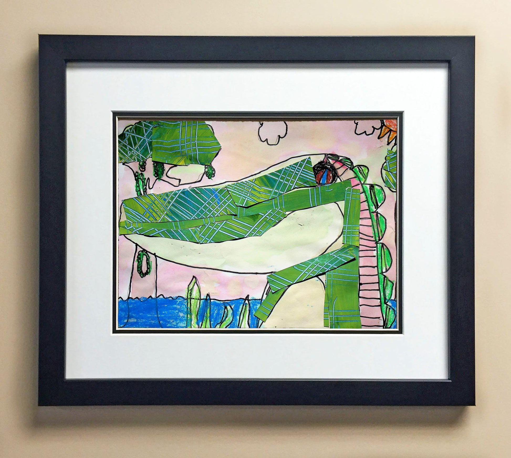 Included with the purchase is the Students Artwork, Frame, double matboard, shatter proof plexiglass, and a ready to hang backerboard with turnbuttons