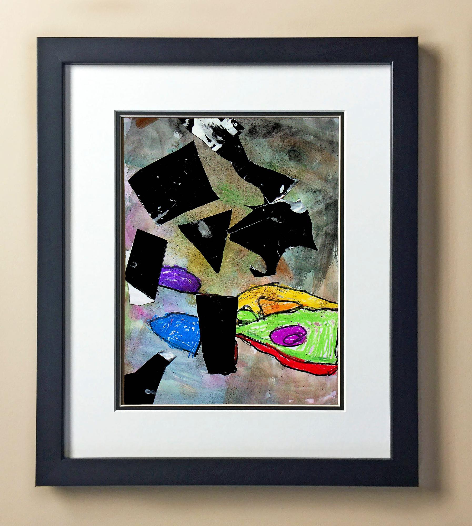 Included with the purchase is the Students Artwork, Frame, double matboard, shatter proof plexiglass, and a ready to hang backerboard with turnbuttons