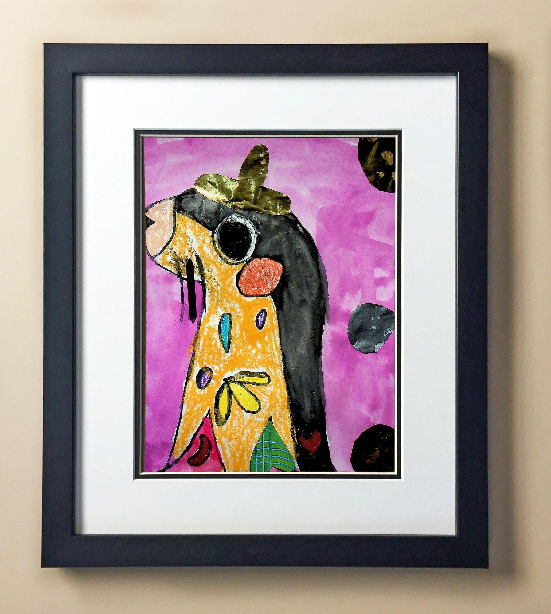 Included with the purchase is the Students Artwork, Frame, double matboard, shatter proof plexiglass, and a ready to hang backerboard with turnbuttons