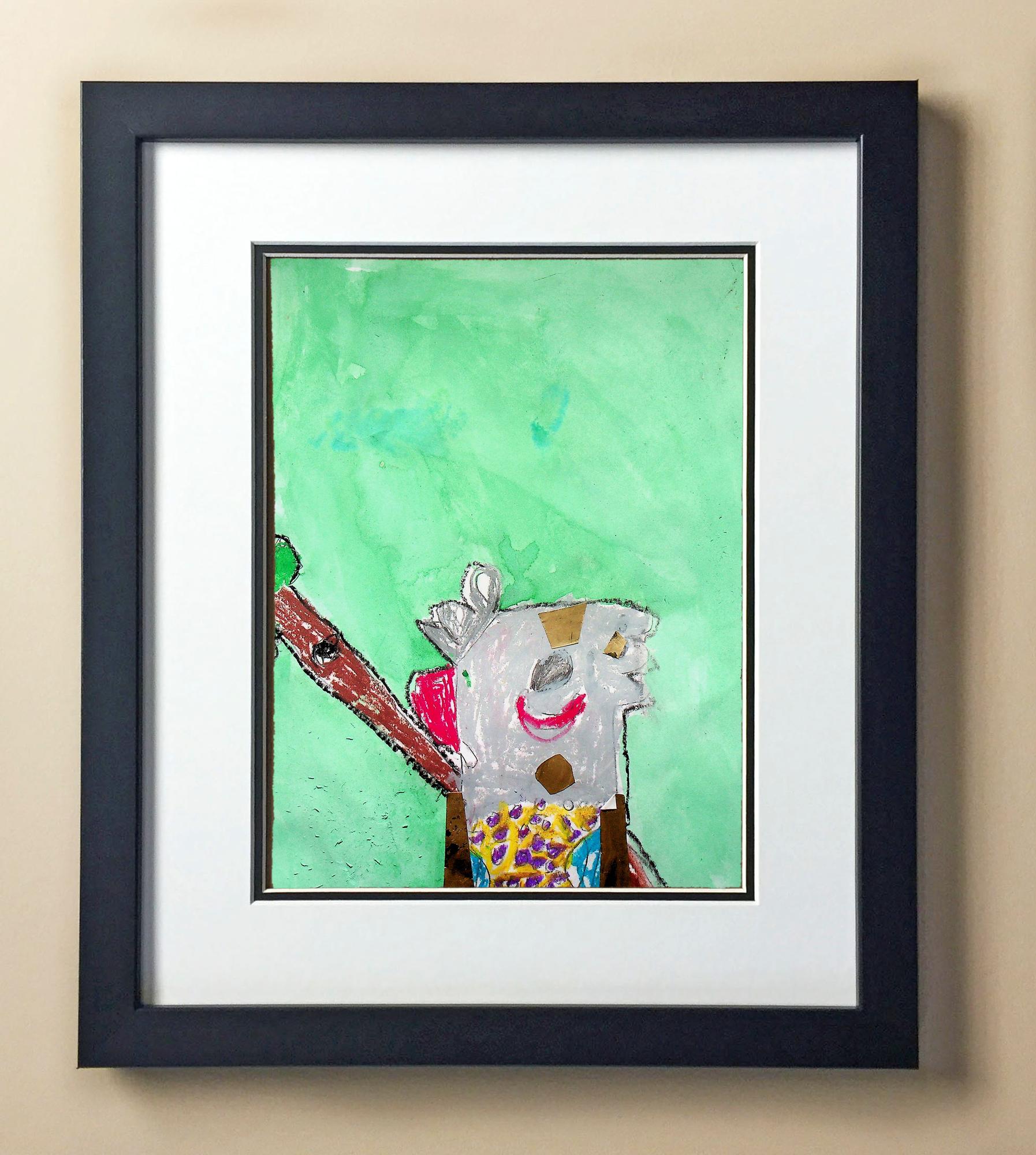Included with the purchase is the Students Artwork, Frame, double matboard, shatter proof plexiglass, and a ready to hang backerboard with turnbuttons