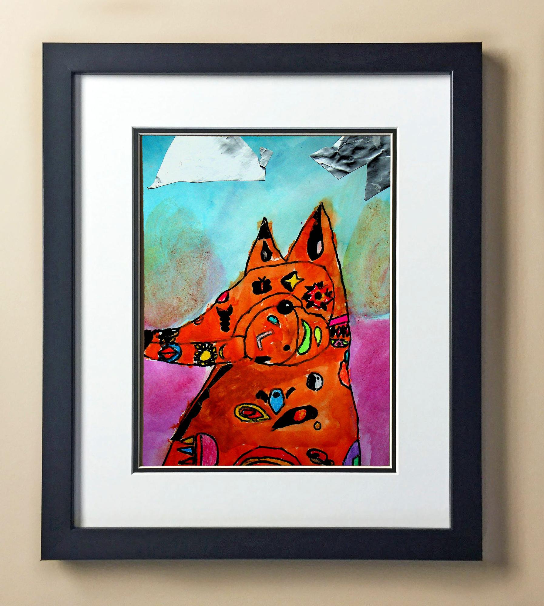 Included with the purchase is the Students Artwork, Frame, double matboard, shatter proof plexiglass, and a ready to hang backerboard with turnbuttons