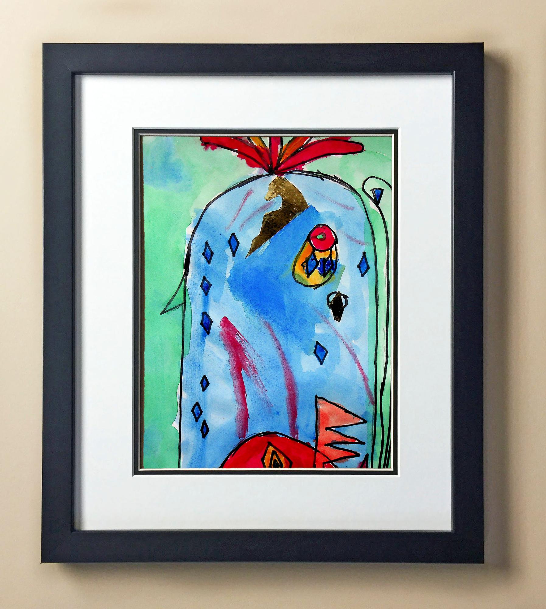 Included with the purchase is the Students Artwork, Frame, double matboard, shatter proof plexiglass, and a ready to hang backerboard with turnbuttons