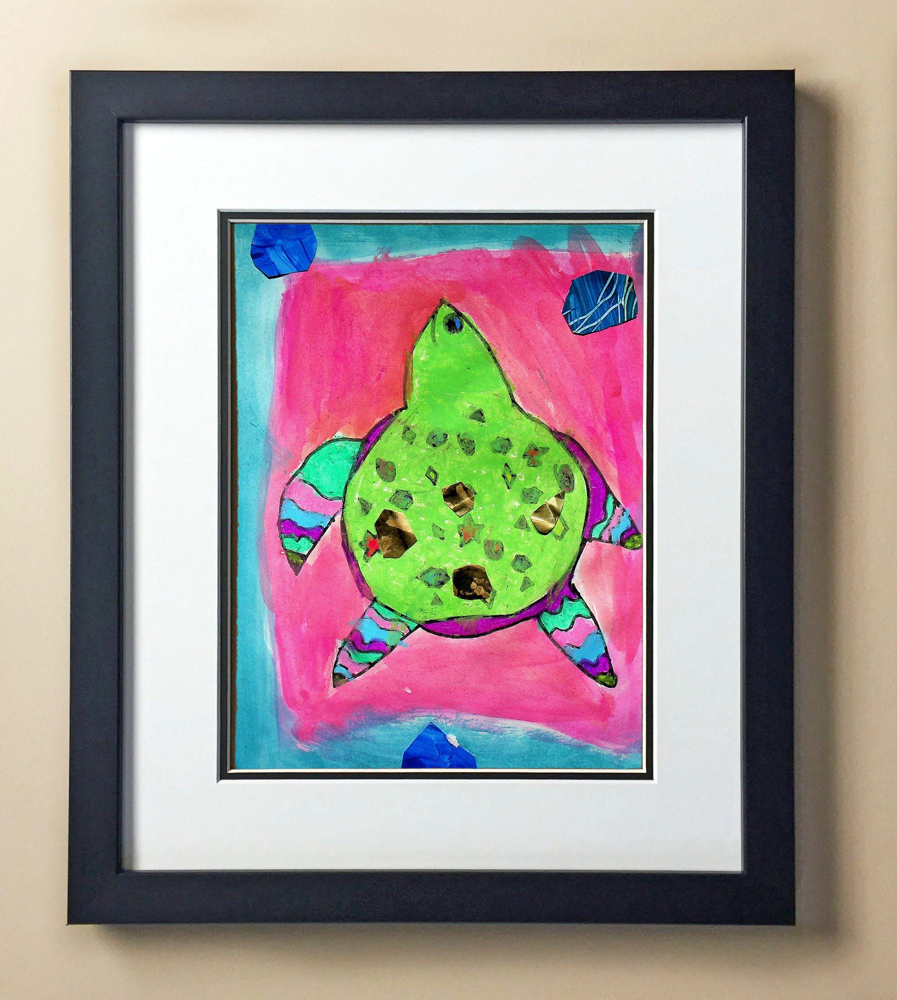 Included with the purchase is the Students Artwork, Frame, double matboard, shatter proof plexiglass, and a ready to hang backerboard with turnbuttons
