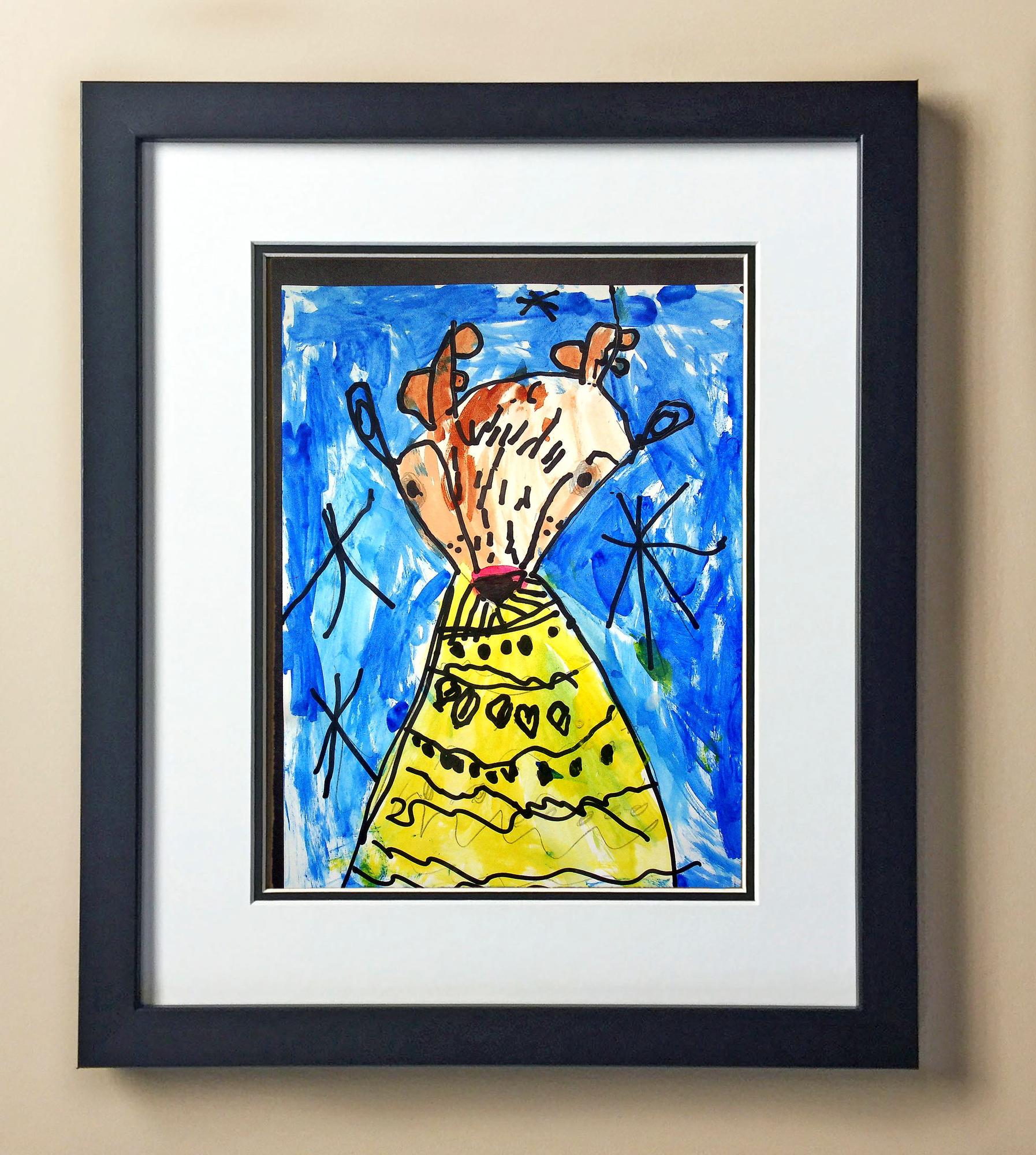 Included with the purchase is the Students Artwork, Frame, double matboard, shatter proof plexiglass, and a ready to hang backerboard with turnbuttons