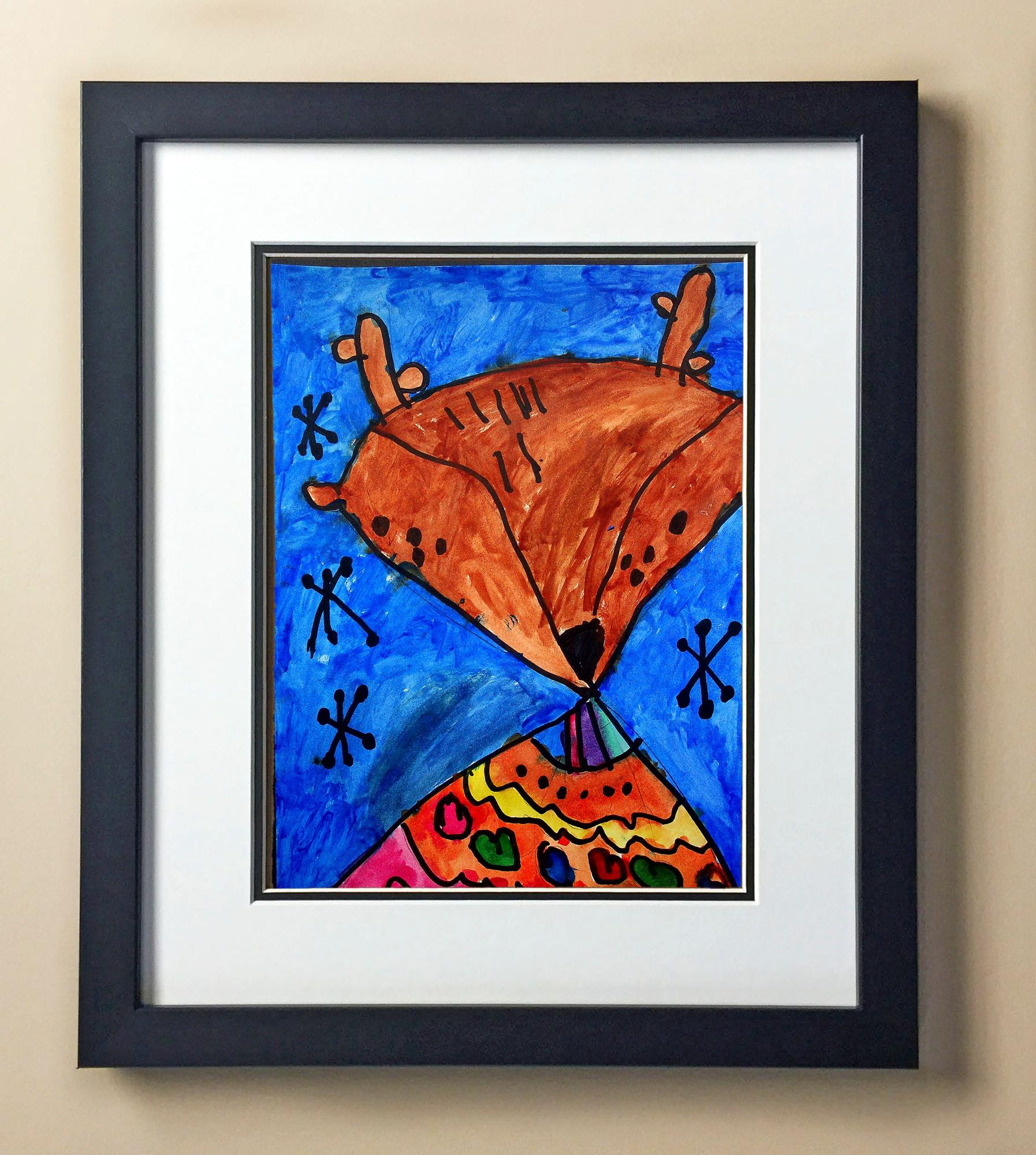 Included with the purchase is the Students Artwork, Frame, double matboard, shatter proof plexiglass, and a ready to hang backerboard with turnbuttons