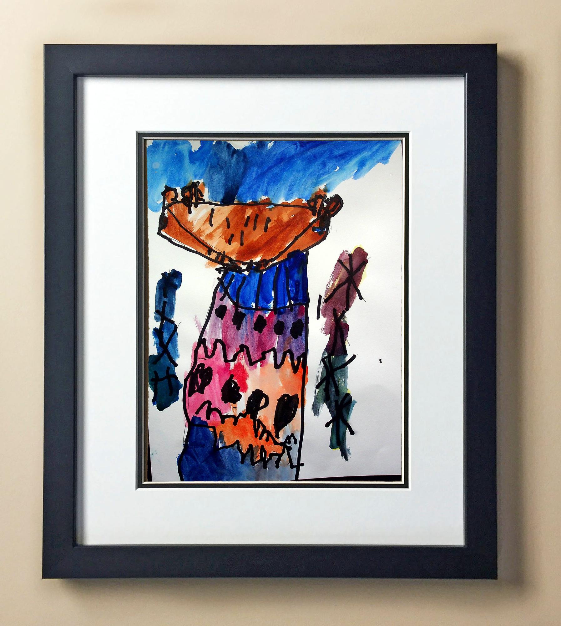 Included with the purchase is the Students Artwork, Frame, double matboard, shatter proof plexiglass, and a ready to hang backerboard with turnbuttons