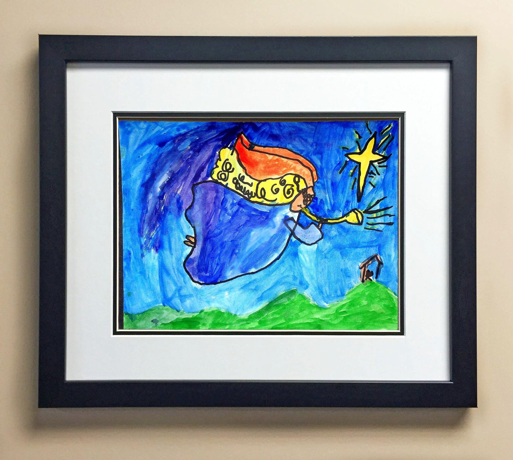 Included with the purchase is the Students Artwork, Frame, double matboard, shatter proof plexiglass, and a ready to hang backerboard with turnbuttons