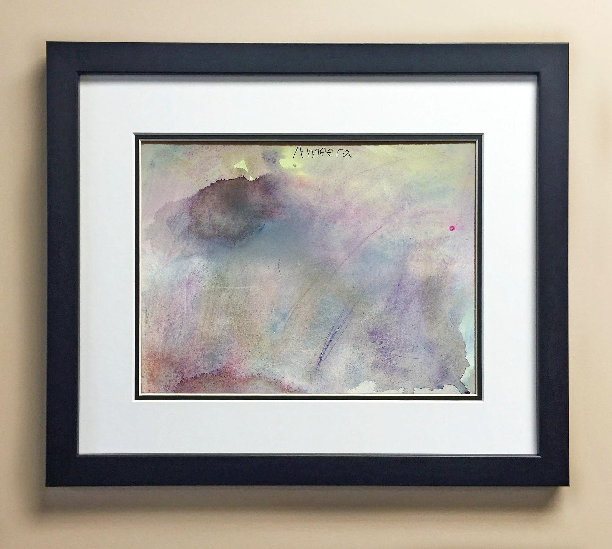 Included with the purchase is the Students Artwork, Frame, double matboard, shatter proof plexiglass, and a ready to hang backerboard with turnbuttons