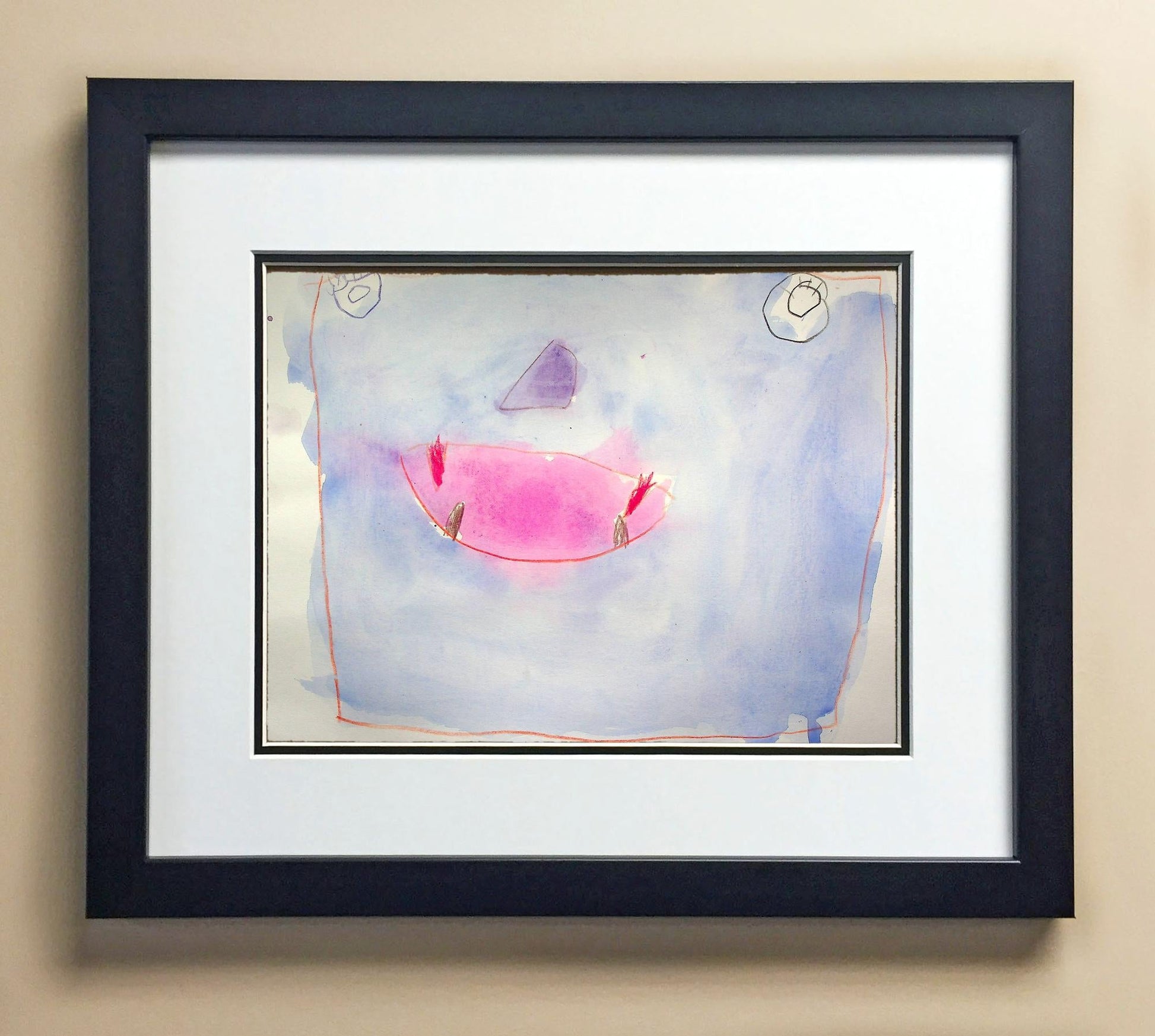 Included with the purchase is the Students Artwork, Frame, double matboard, shatter proof plexiglass, and a ready to hang backerboard with turnbuttons