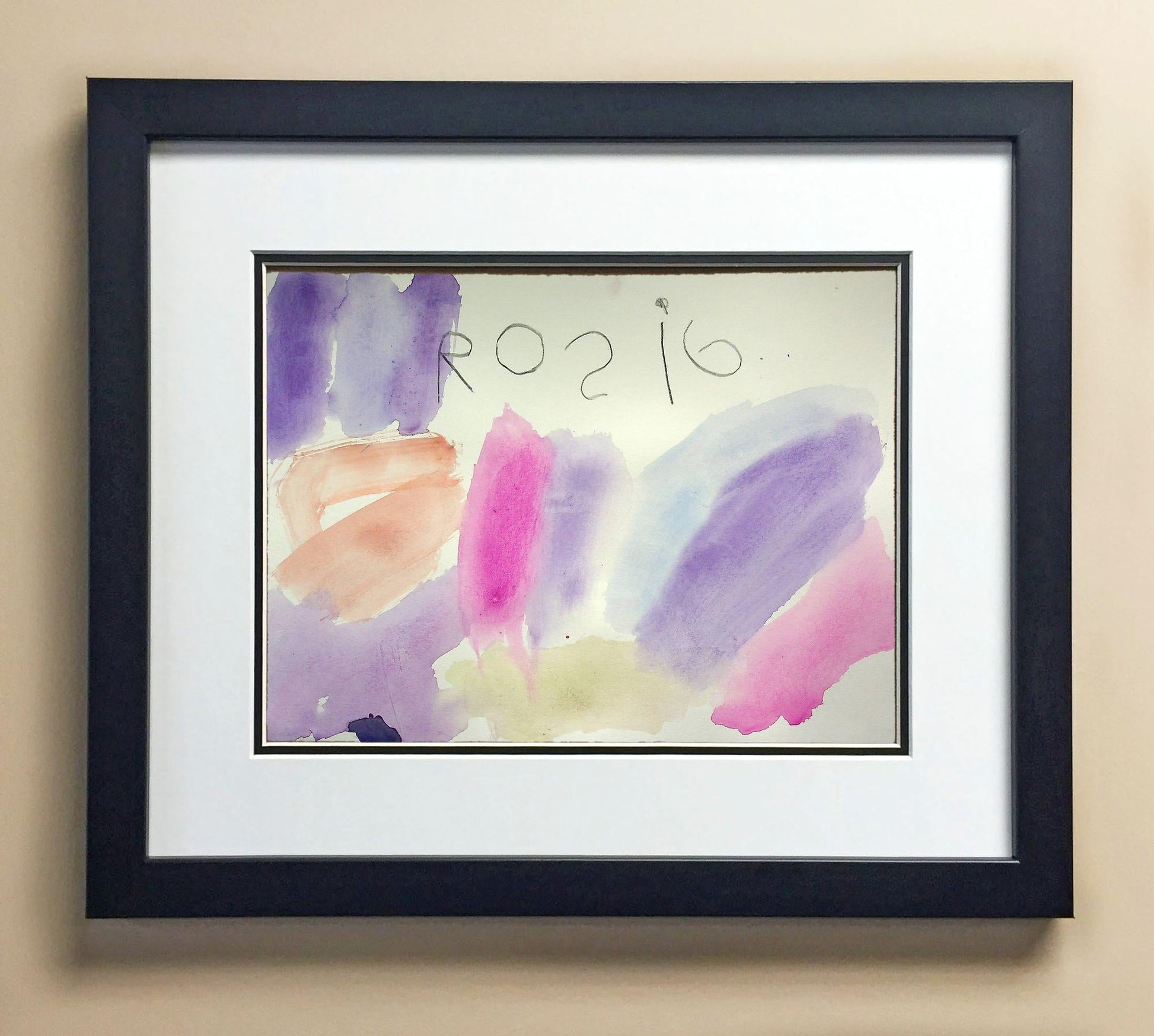 Included with the purchase is the Students Artwork, Frame, double matboard, shatter proof plexiglass, and a ready to hang backerboard with turnbuttons