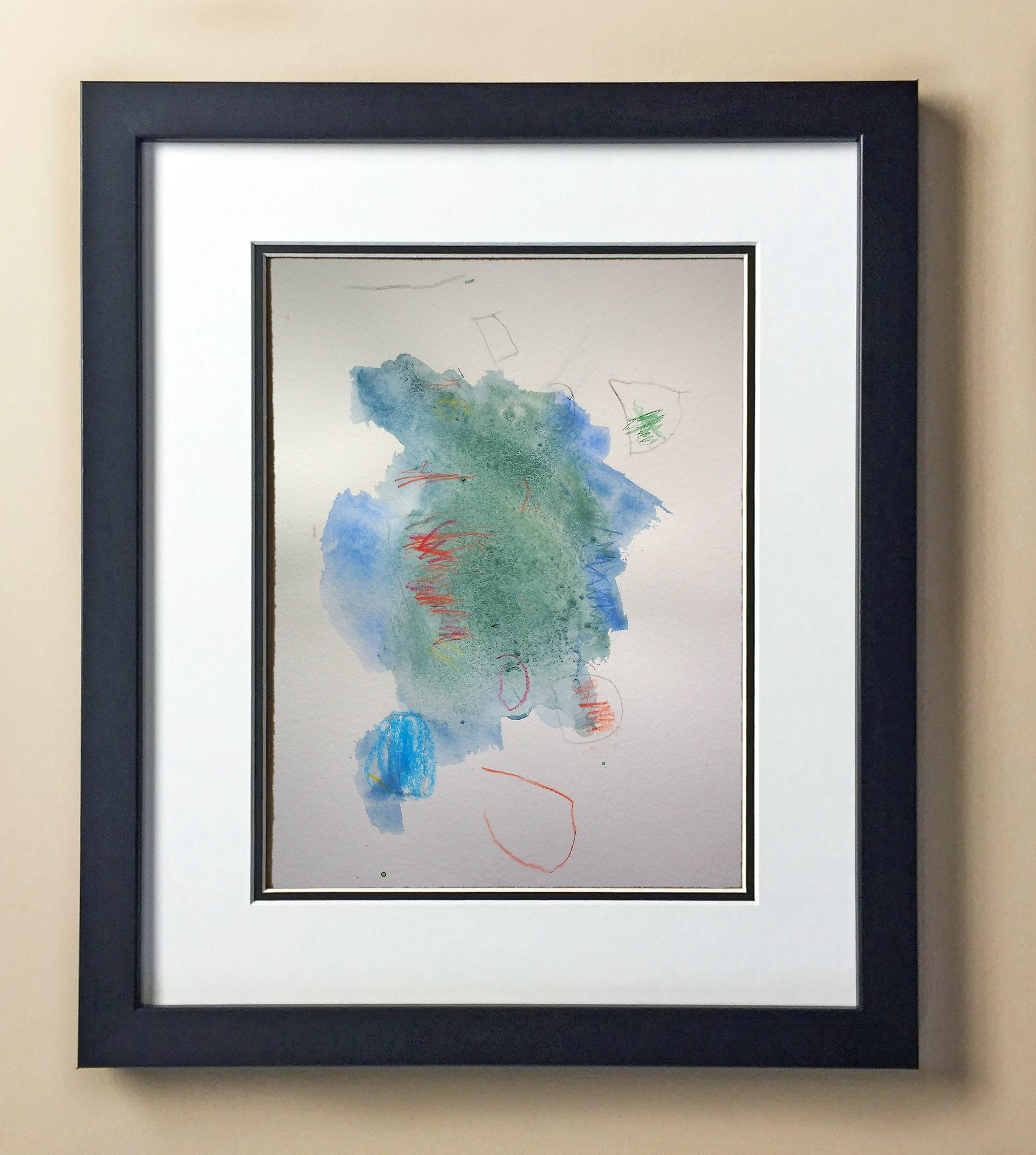 Included with the purchase is the Students Artwork, Frame, double matboard, shatter proof plexiglass, and a ready to hang backerboard with turnbuttons