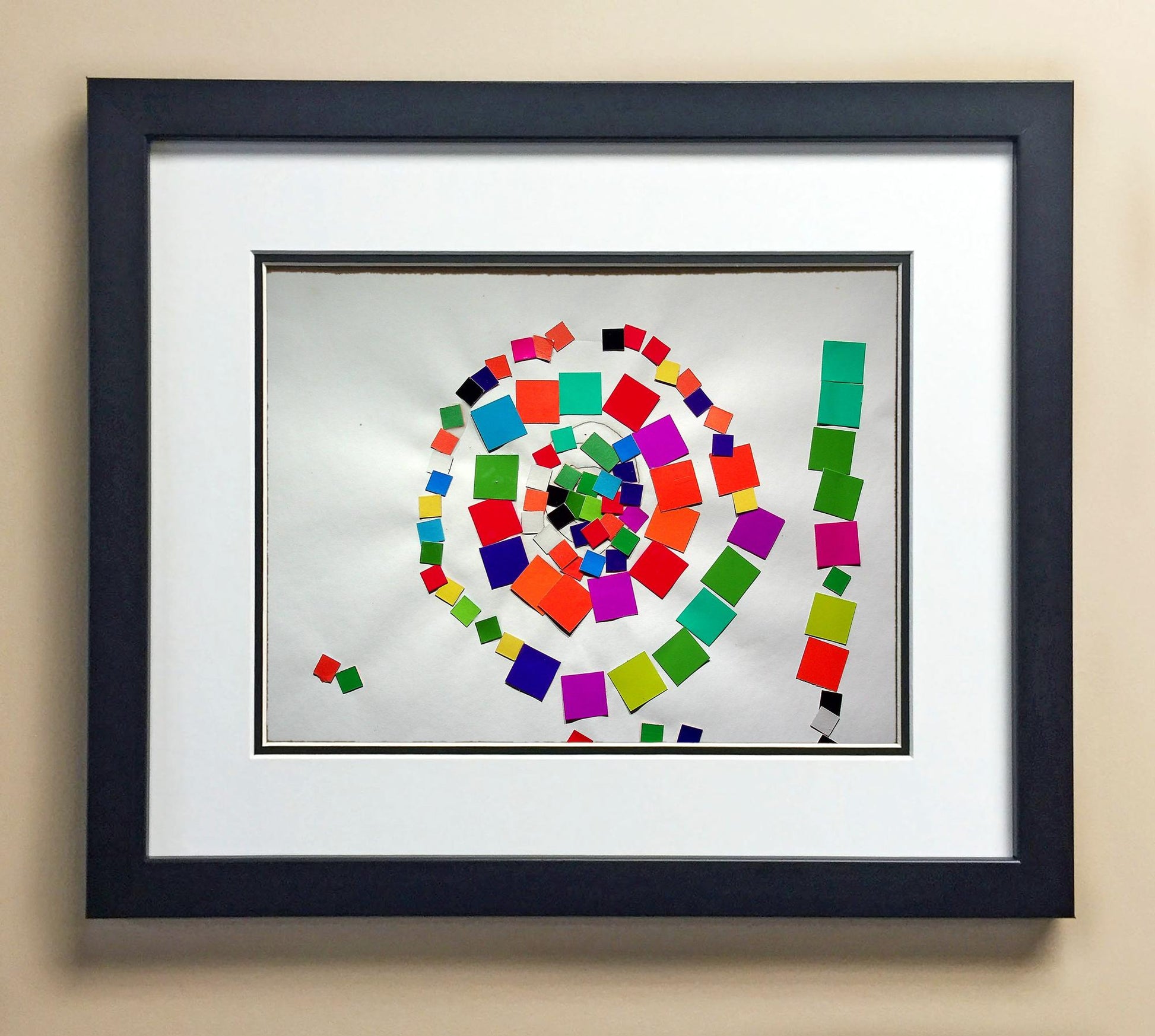Included with the purchase is the Students Artwork, Frame, double matboard, shatter proof plexiglass, and a ready to hang backerboard with turnbuttons