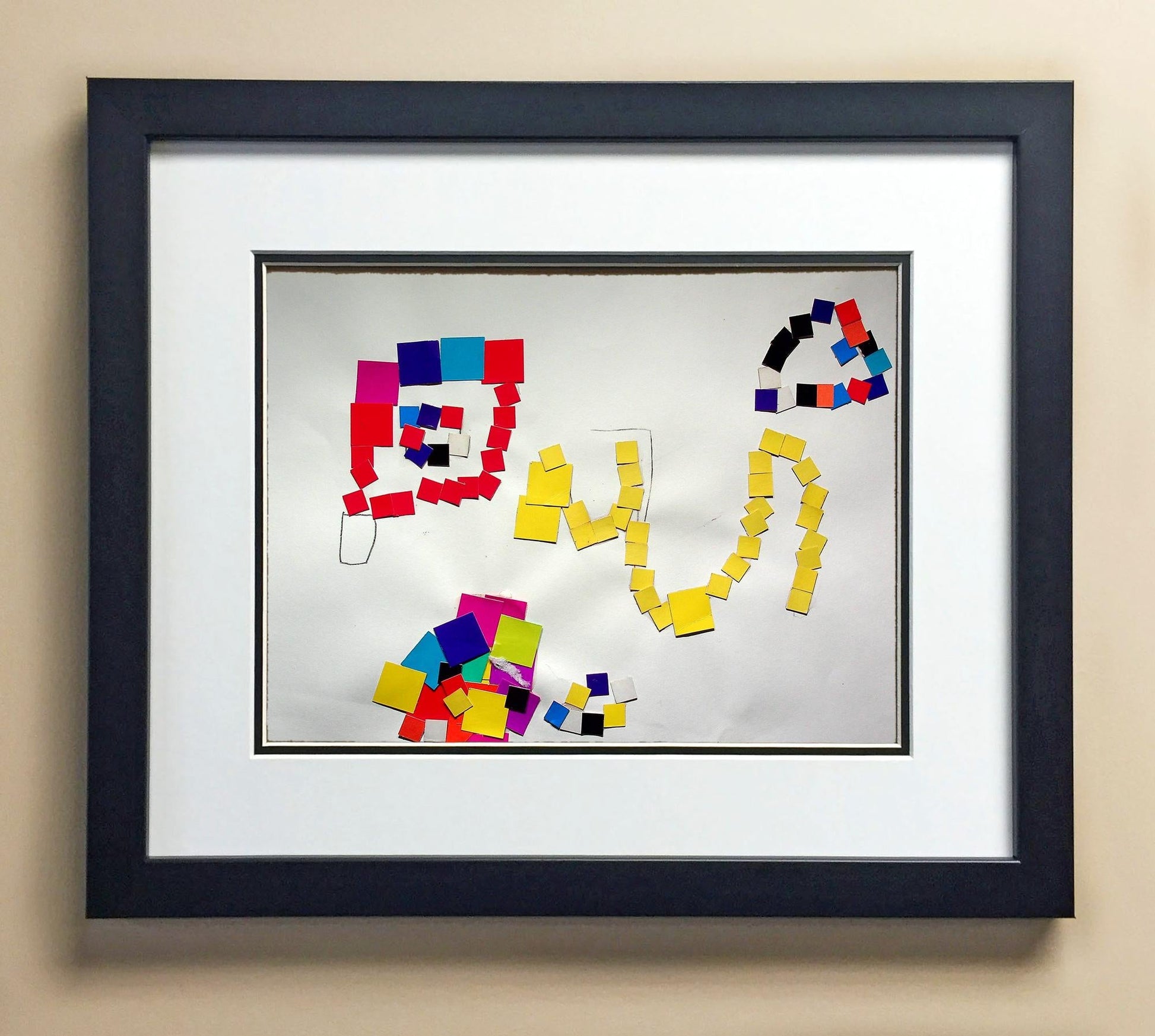 Included with the purchase is the Students Artwork, Frame, double matboard, shatter proof plexiglass, and a ready to hang backerboard with turnbuttons