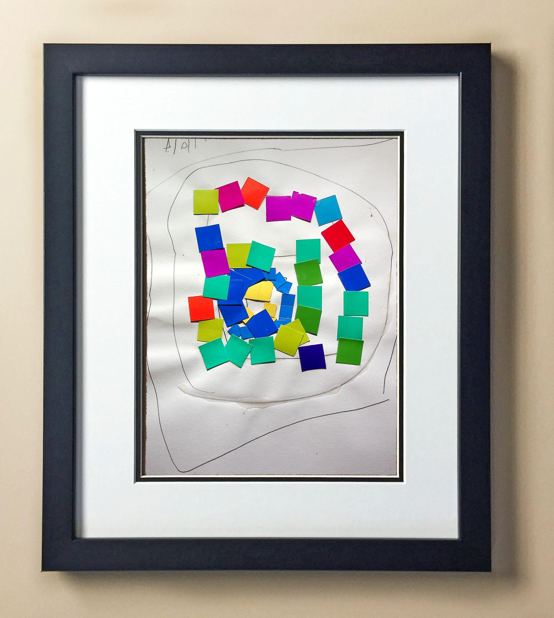 Included with the purchase is the Students Artwork, Frame, double matboard, shatter proof plexiglass, and a ready to hang backerboard with turnbuttons