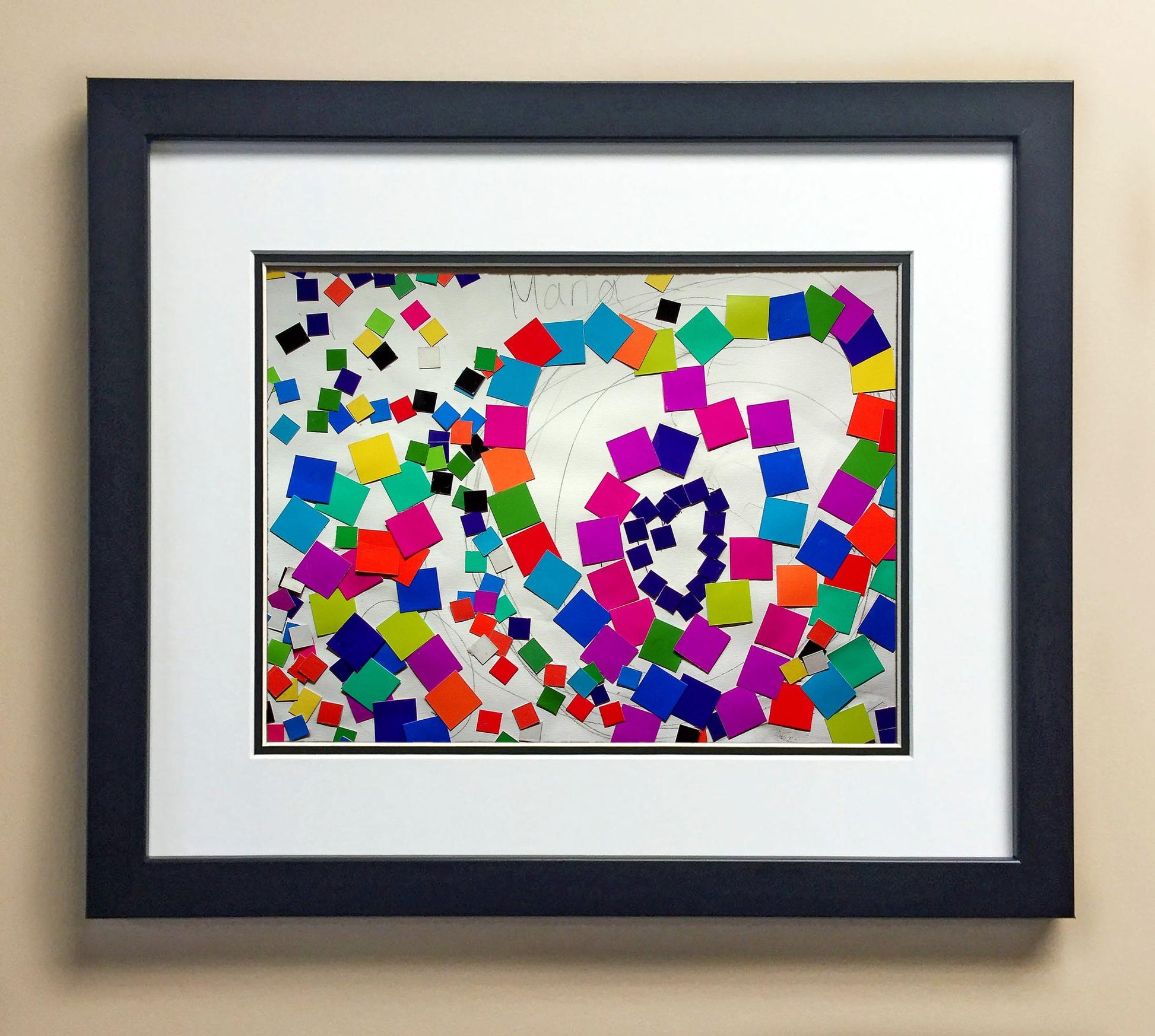 Included with the purchase is the Students Artwork, Frame, double matboard, shatter proof plexiglass, and a ready to hang backerboard with turnbuttons