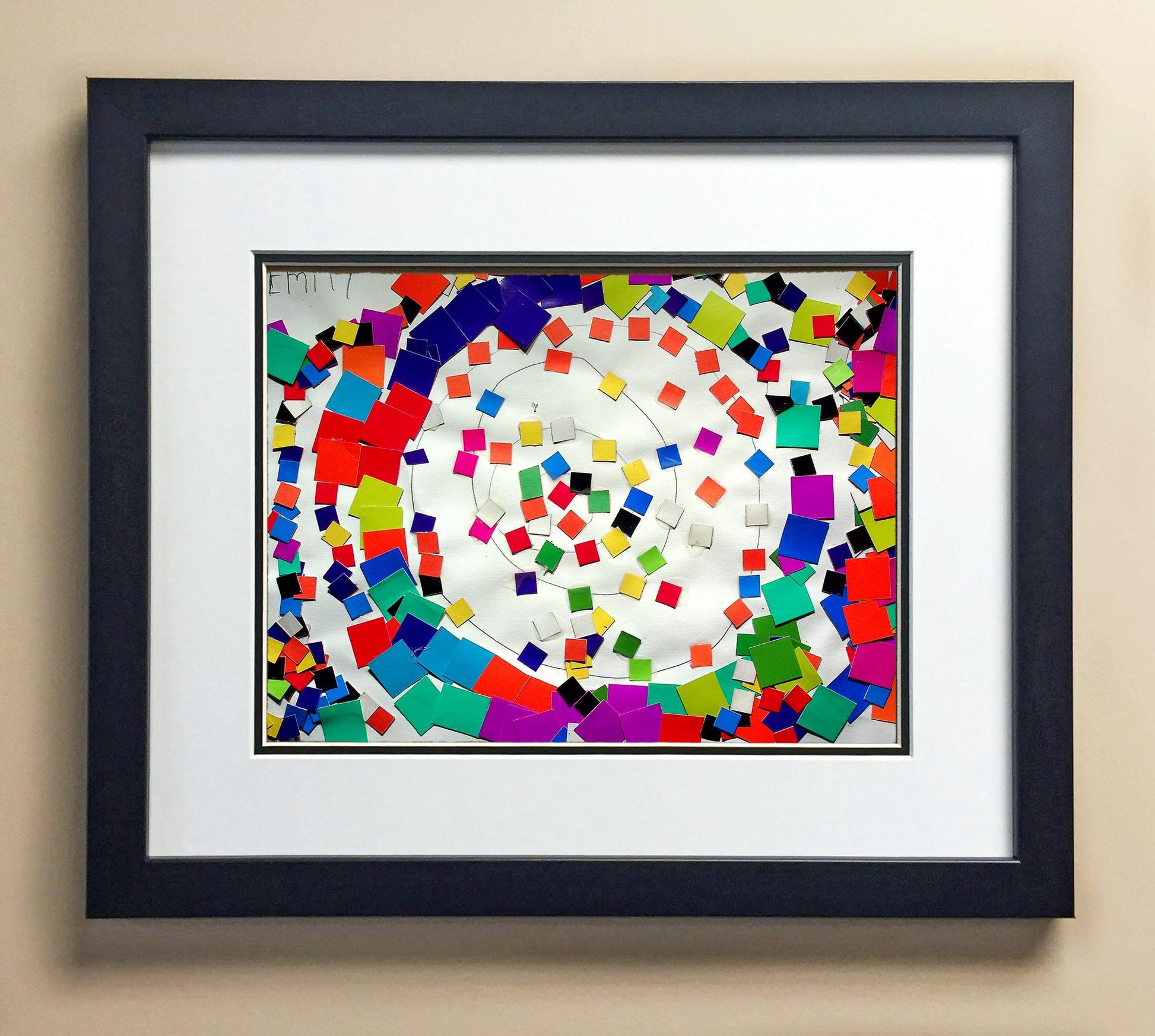 Included with the purchase is the Students Artwork, Frame, double matboard, shatter proof plexiglass, and a ready to hang backerboard with turnbuttons