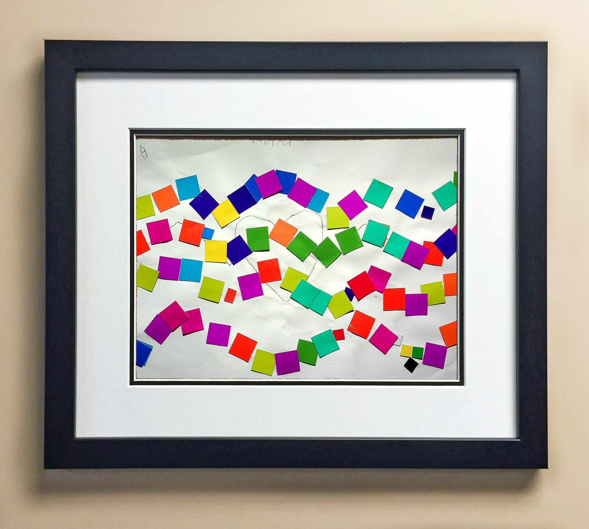 Included with the purchase is the Students Artwork, Frame, double matboard, shatter proof plexiglass, and a ready to hang backerboard with turnbuttons