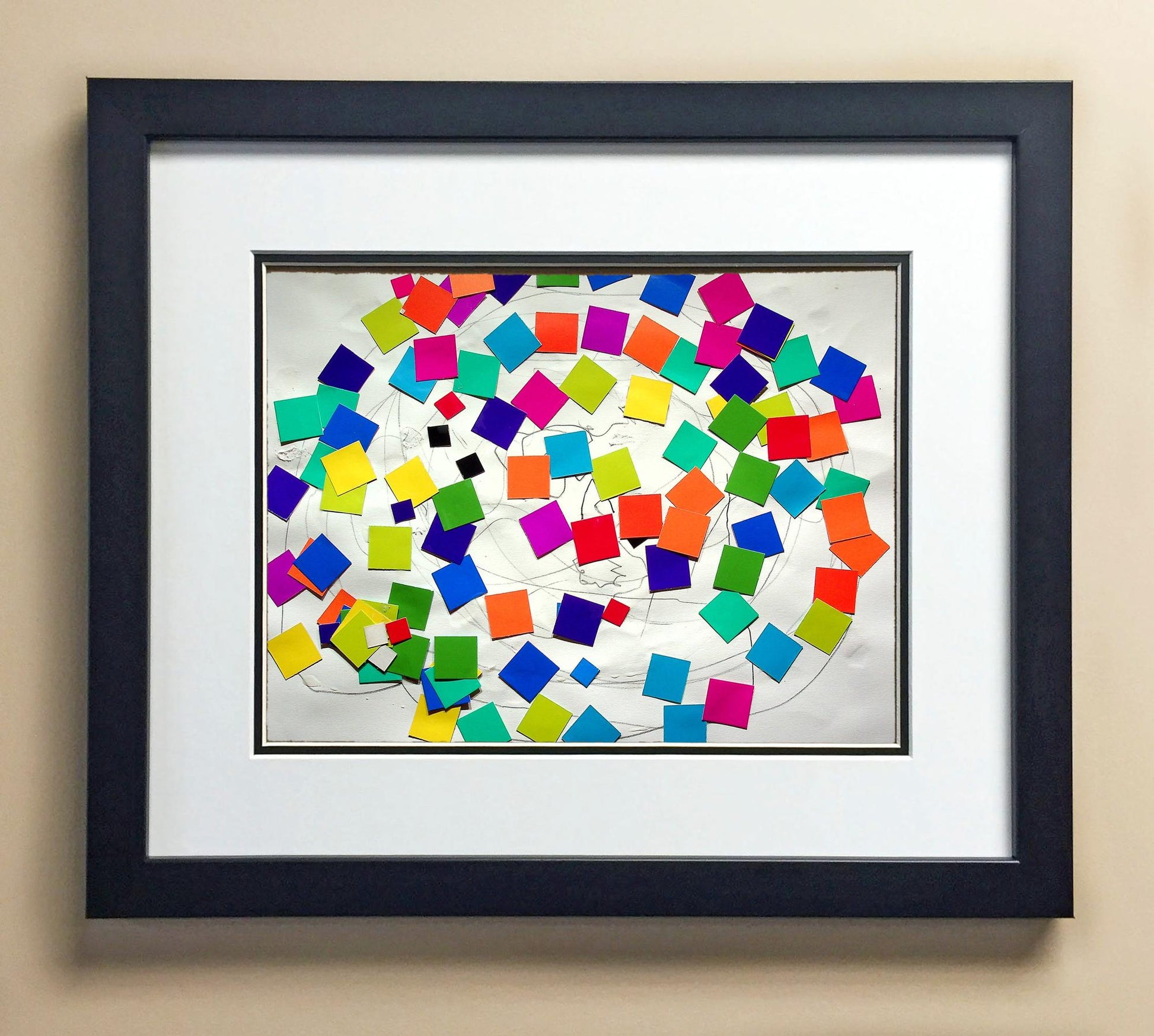 Included with the purchase is the Students Artwork, Frame, double matboard, shatter proof plexiglass, and a ready to hang backerboard with turnbuttons