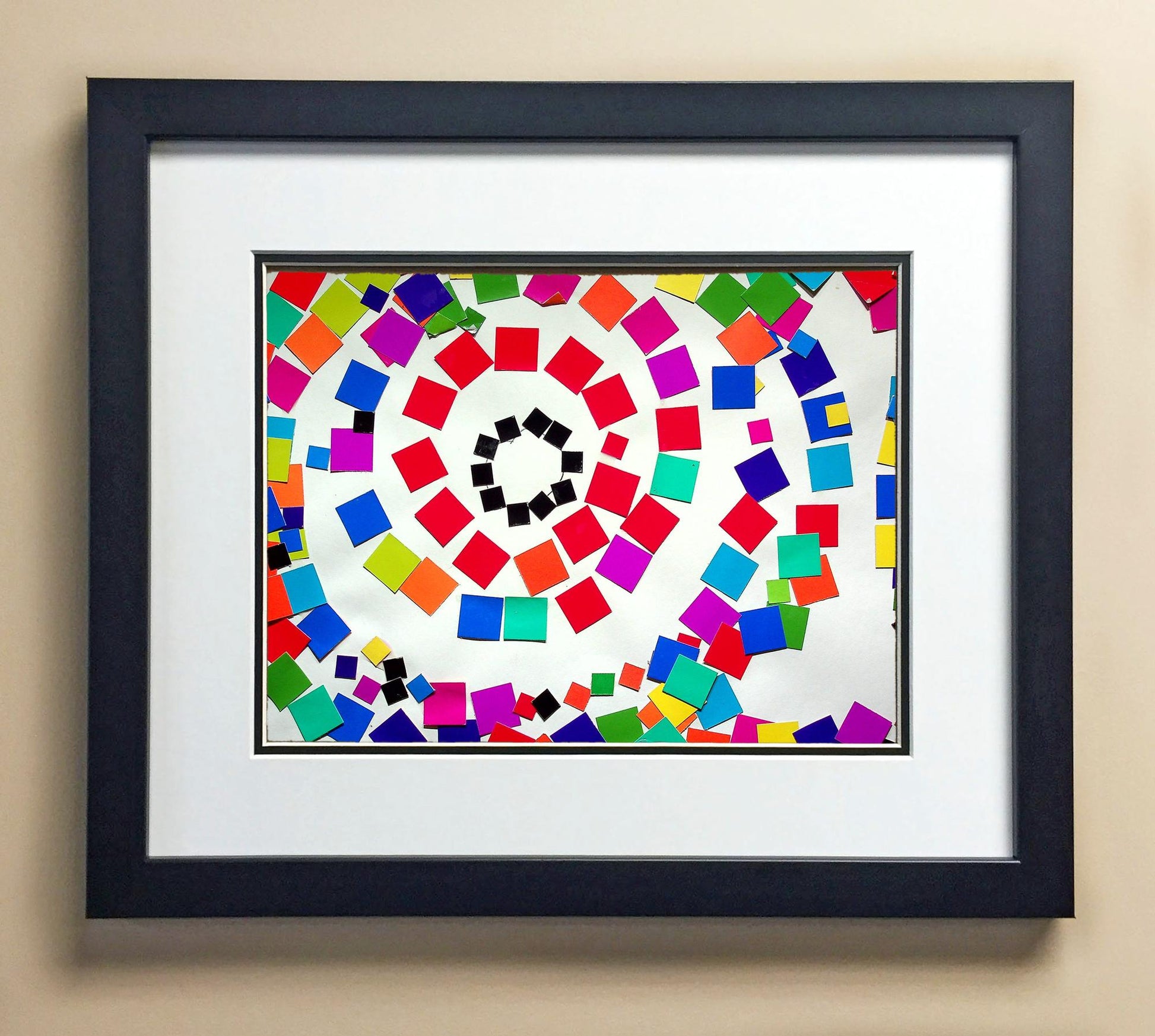 Included with the purchase is the Students Artwork, Frame, double matboard, shatter proof plexiglass, and a ready to hang backerboard with turnbuttons