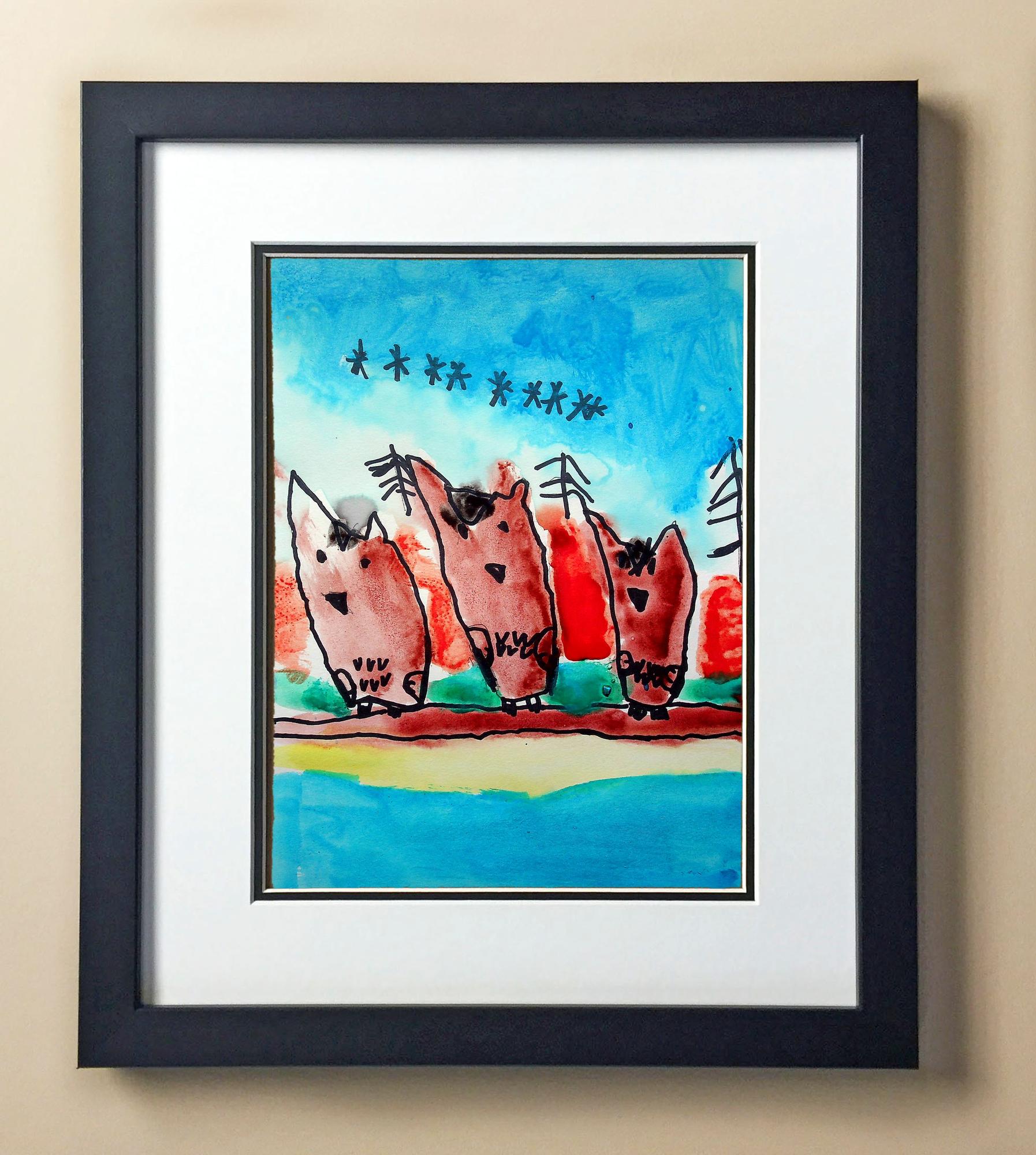 Included with the purchase is the Students Artwork, Frame, double matboard, shatter proof plexiglass, and a ready to hang backerboard with turnbuttons