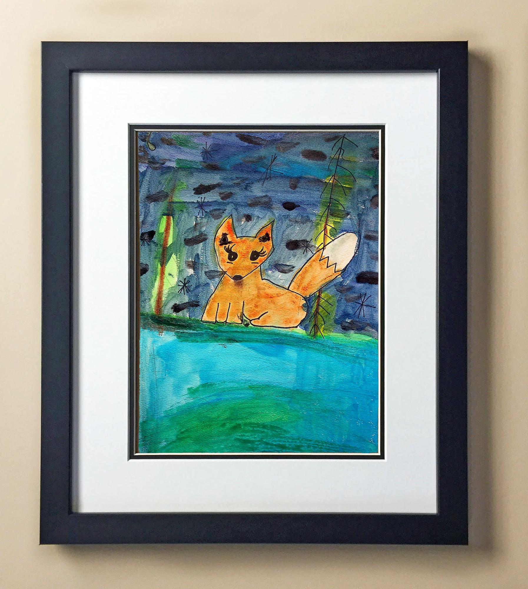 Included with the purchase is the Students Artwork, Frame, double matboard, shatter proof plexiglass, and a ready to hang backerboard with turnbuttons
