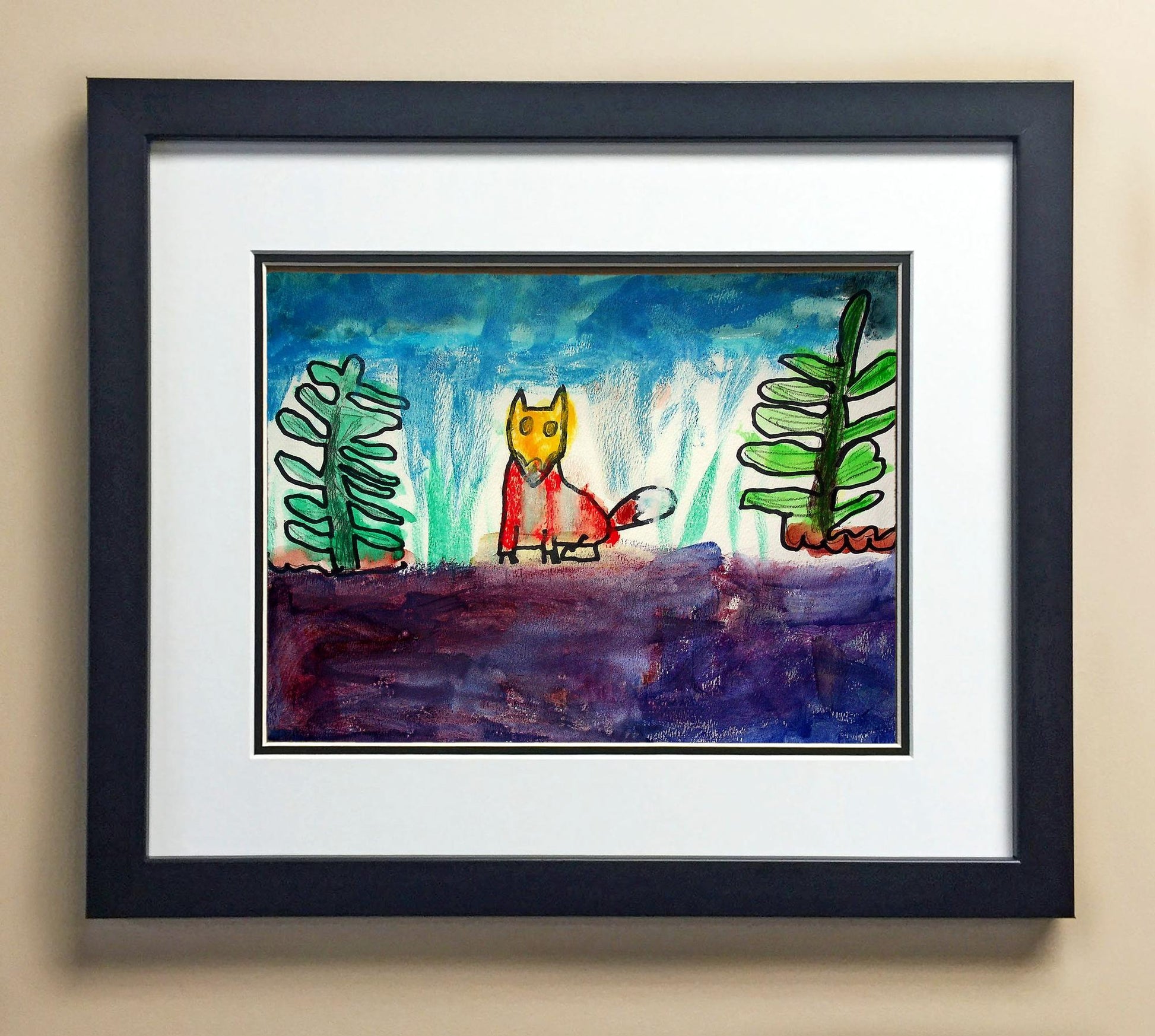 Included with the purchase is the Students Artwork, Frame, double matboard, shatter proof plexiglass, and a ready to hang backerboard with turnbuttons