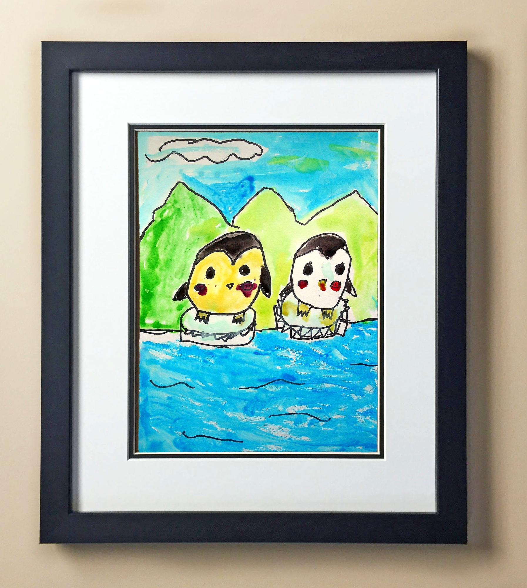 Included with the purchase is the Students Artwork, Frame, double matboard, shatter proof plexiglass, and a ready to hang backerboard with turnbuttons