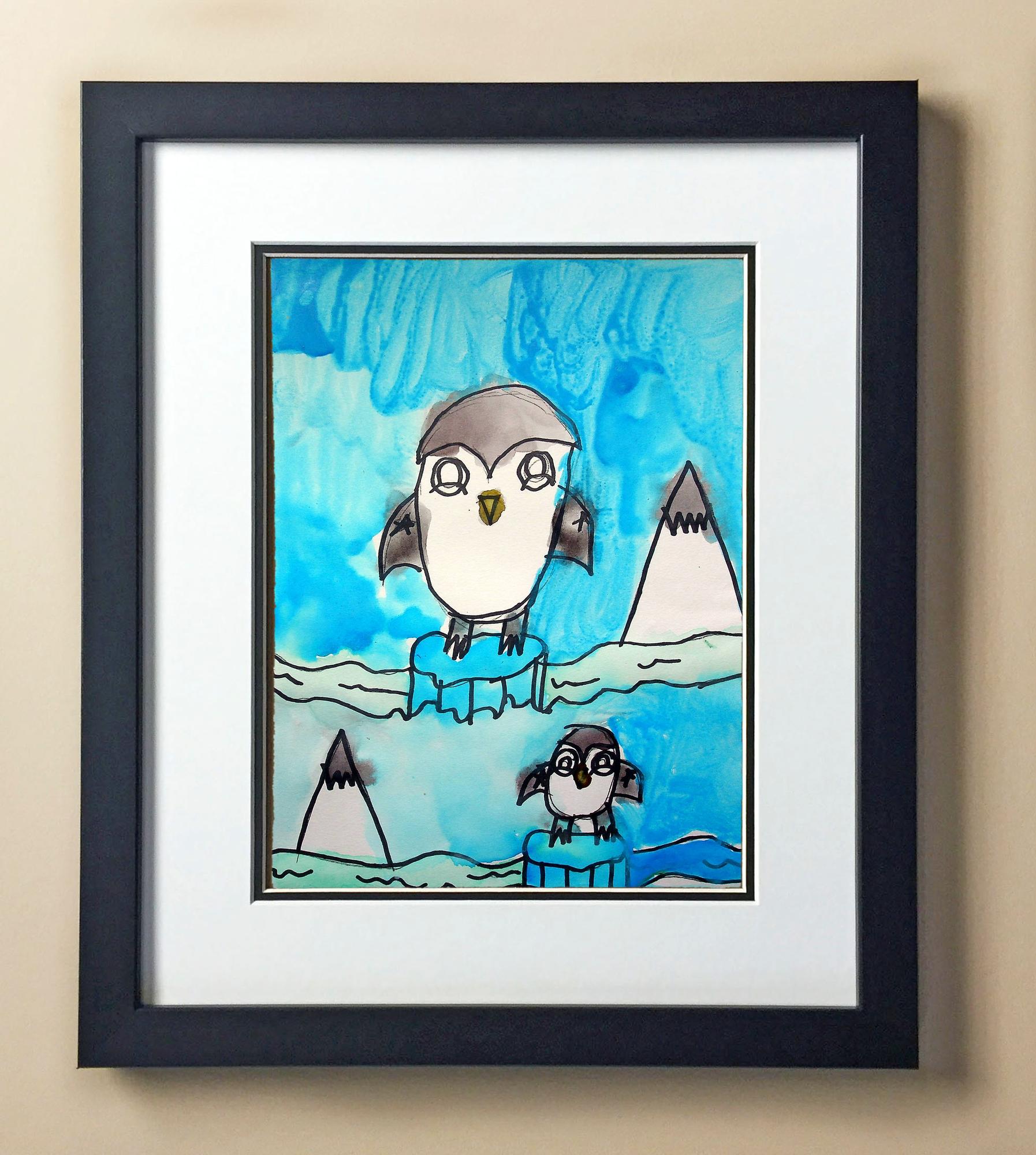 Included with the purchase is the Students Artwork, Frame, double matboard, shatter proof plexiglass, and a ready to hang backerboard with turnbuttons