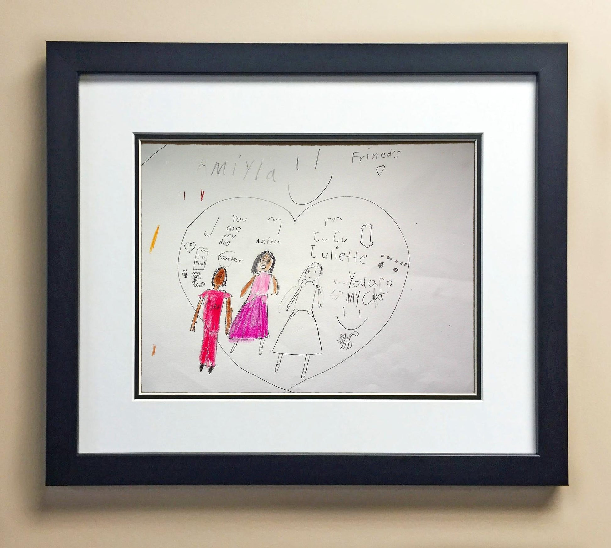 Included with the purchase is the Students Artwork, Frame, double matboard, shatter proof plexiglass, and a ready to hang backerboard with turnbuttons