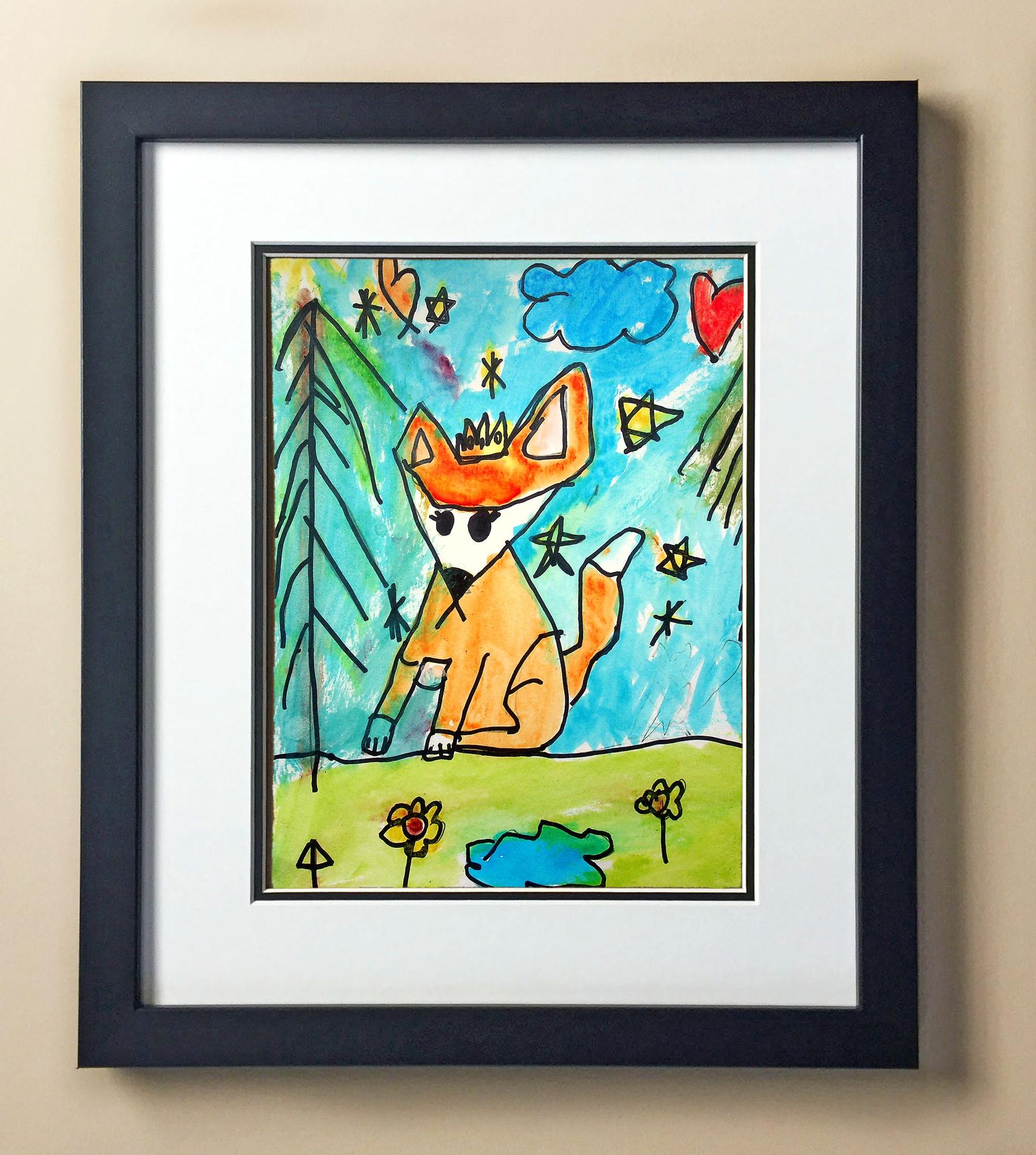 Included with the purchase is the Students Artwork, Frame, double matboard, shatter proof plexiglass, and a ready to hang backerboard with turnbuttons
