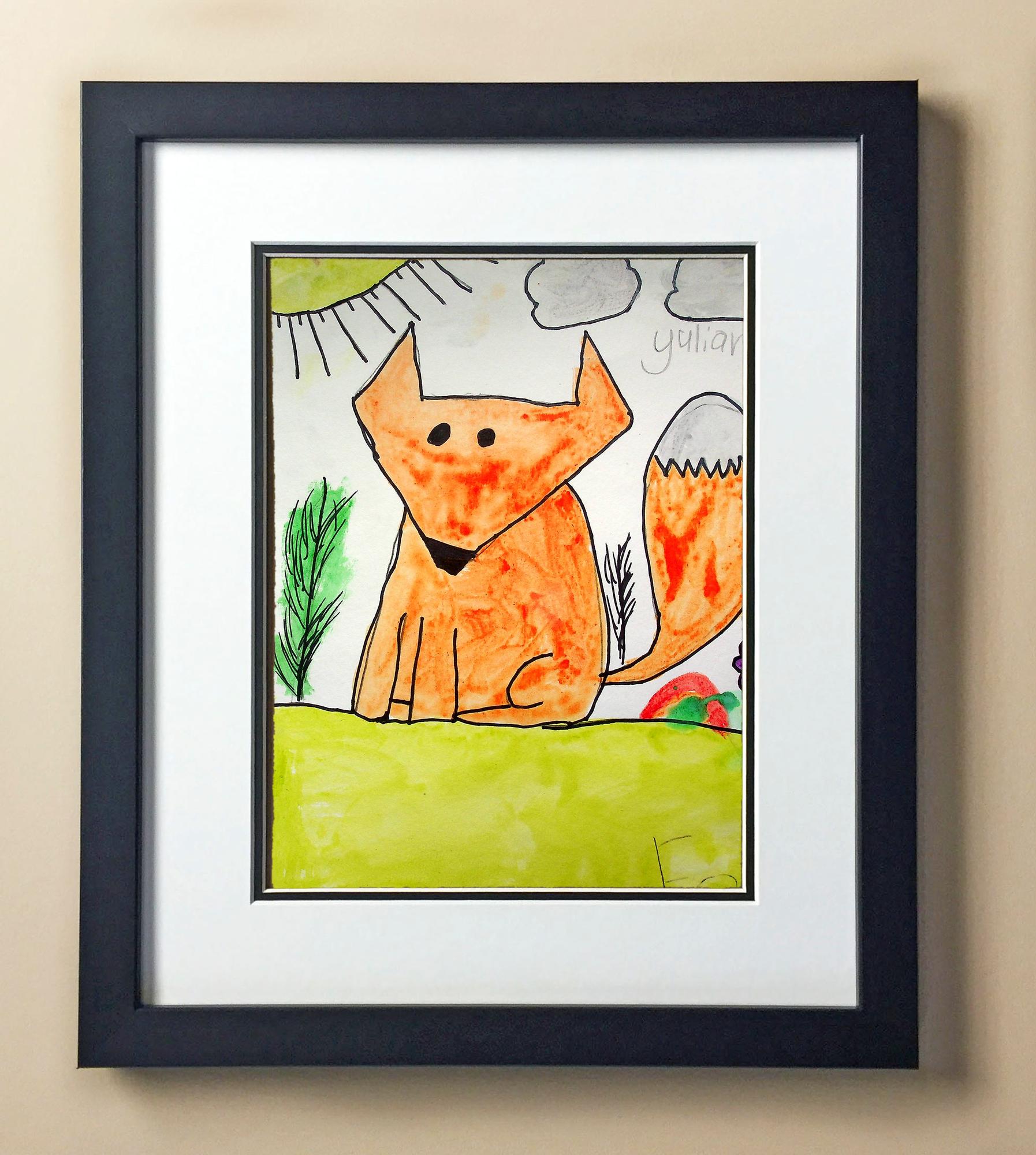 Included with the purchase is the Students Artwork, Frame, double matboard, shatter proof plexiglass, and a ready to hang backerboard with turnbuttons