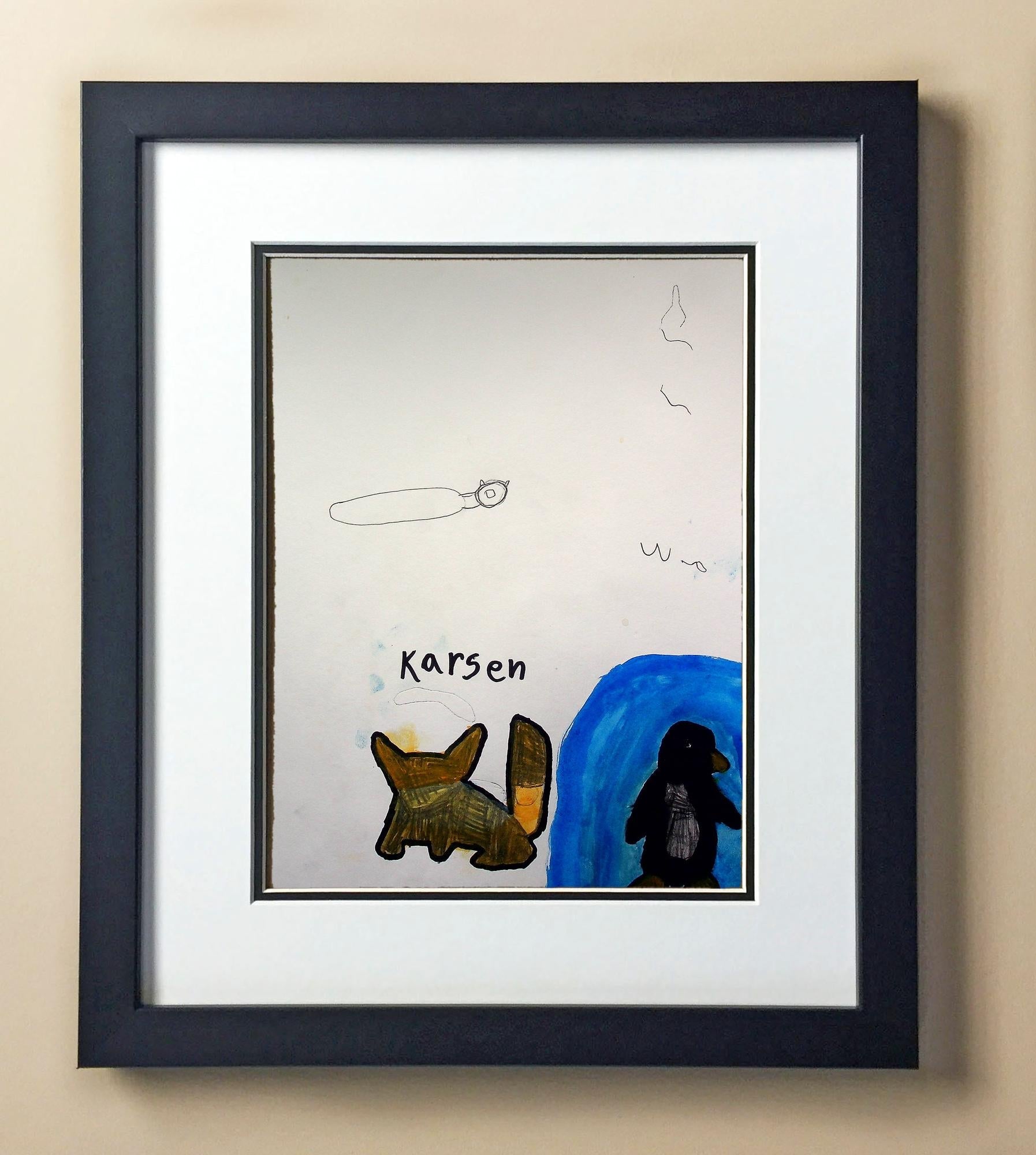 Included with the purchase is the Students Artwork, Frame, double matboard, shatter proof plexiglass, and a ready to hang backerboard with turnbuttons