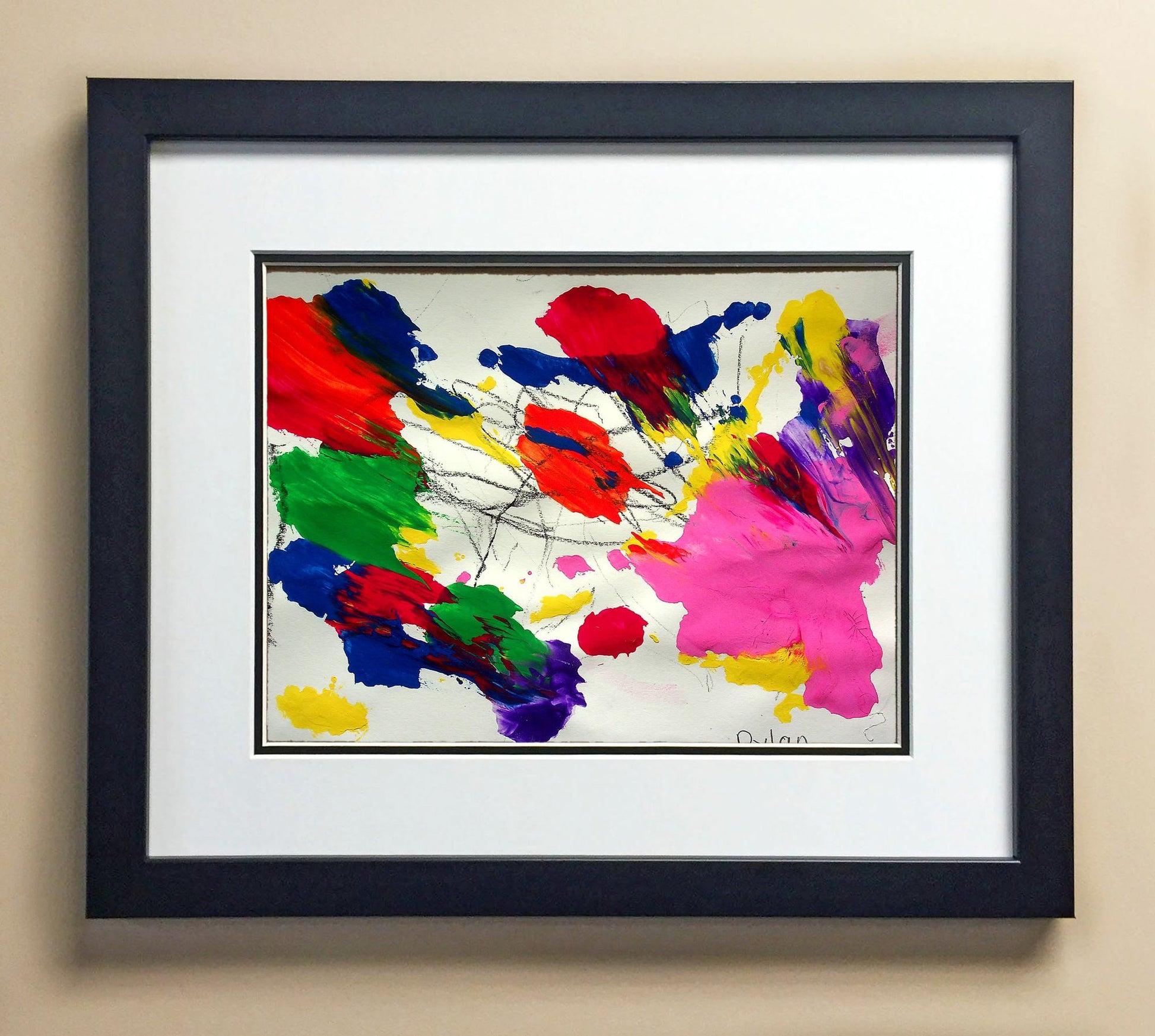 Included with the purchase is the Students Artwork, Frame, double matboard, shatter proof plexiglass, and a ready to hang backerboard with turnbuttons