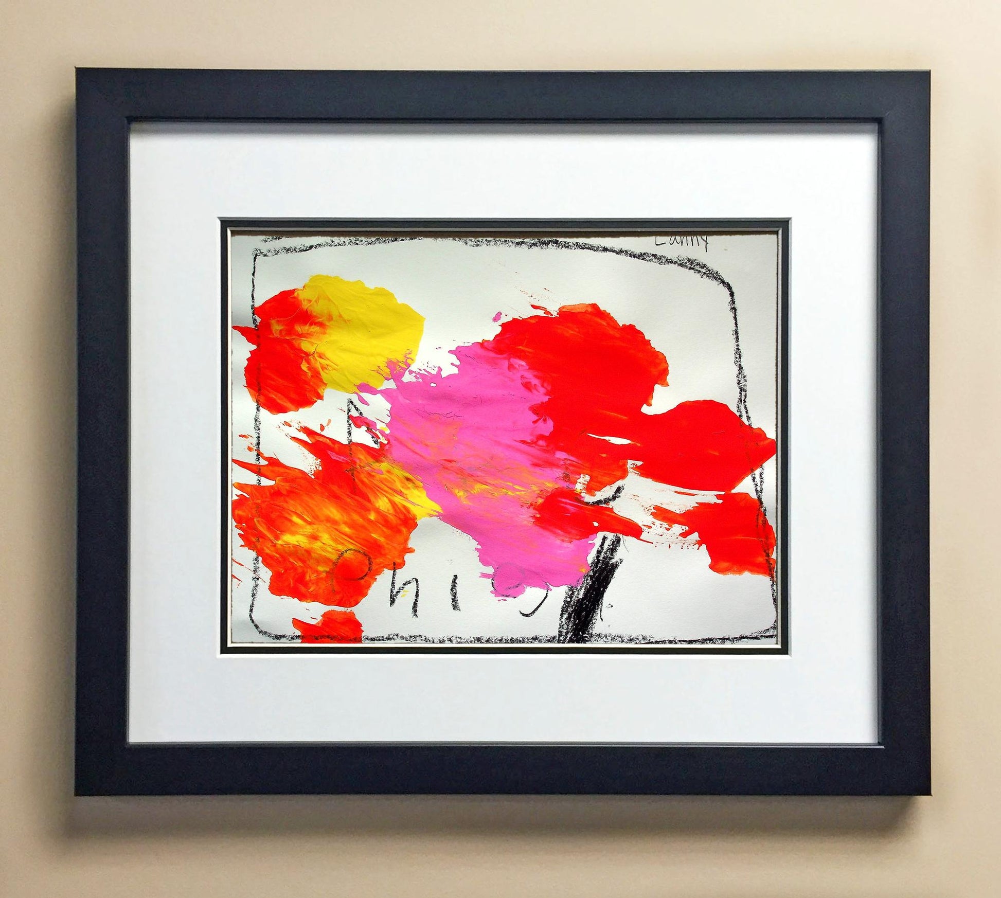 Included with the purchase is the Students Artwork, Frame, double matboard, shatter proof plexiglass, and a ready to hang backerboard with turnbuttons