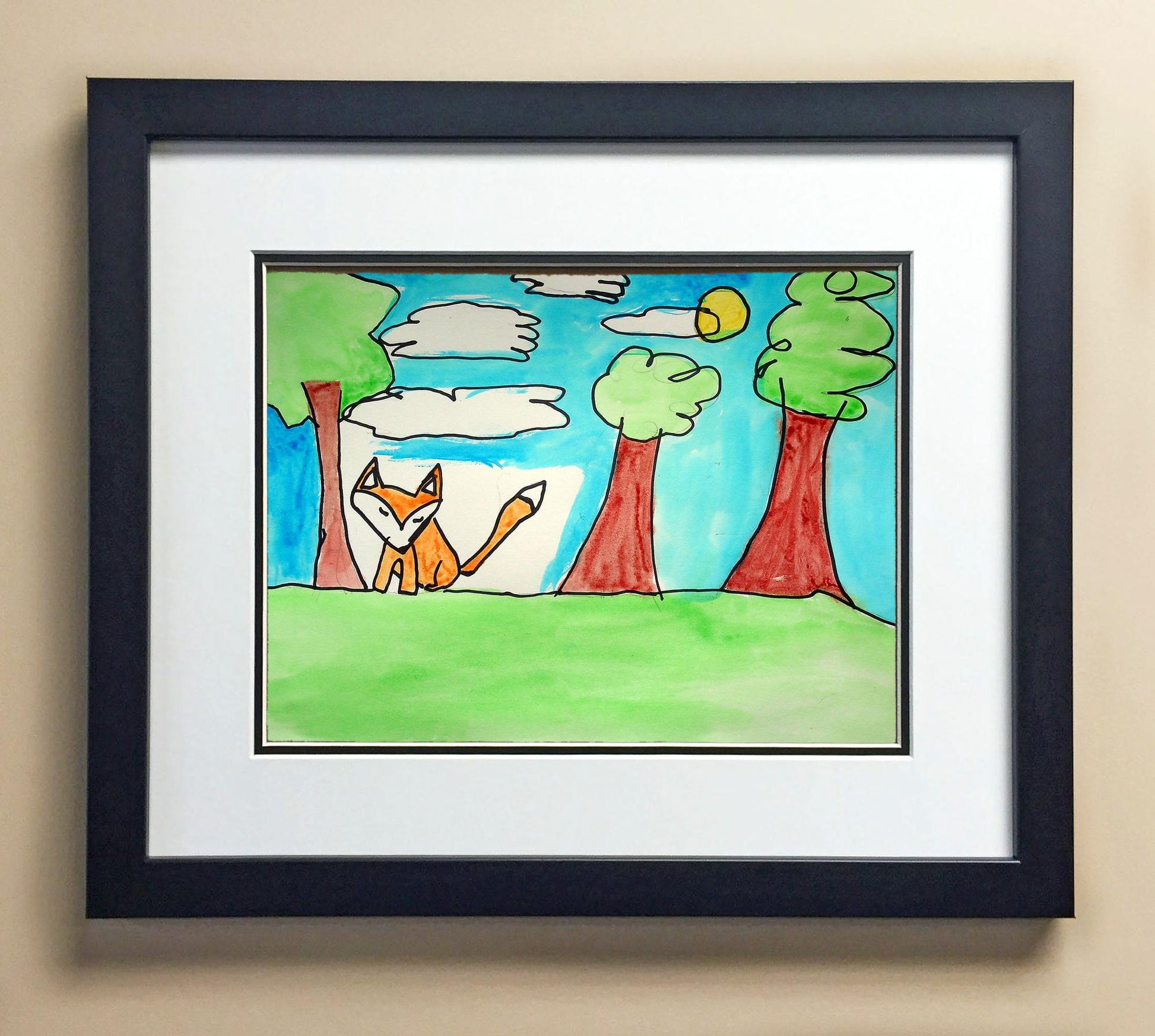 Included with the purchase is the Students Artwork, Frame, double matboard, shatter proof plexiglass, and a ready to hang backerboard with turnbuttons