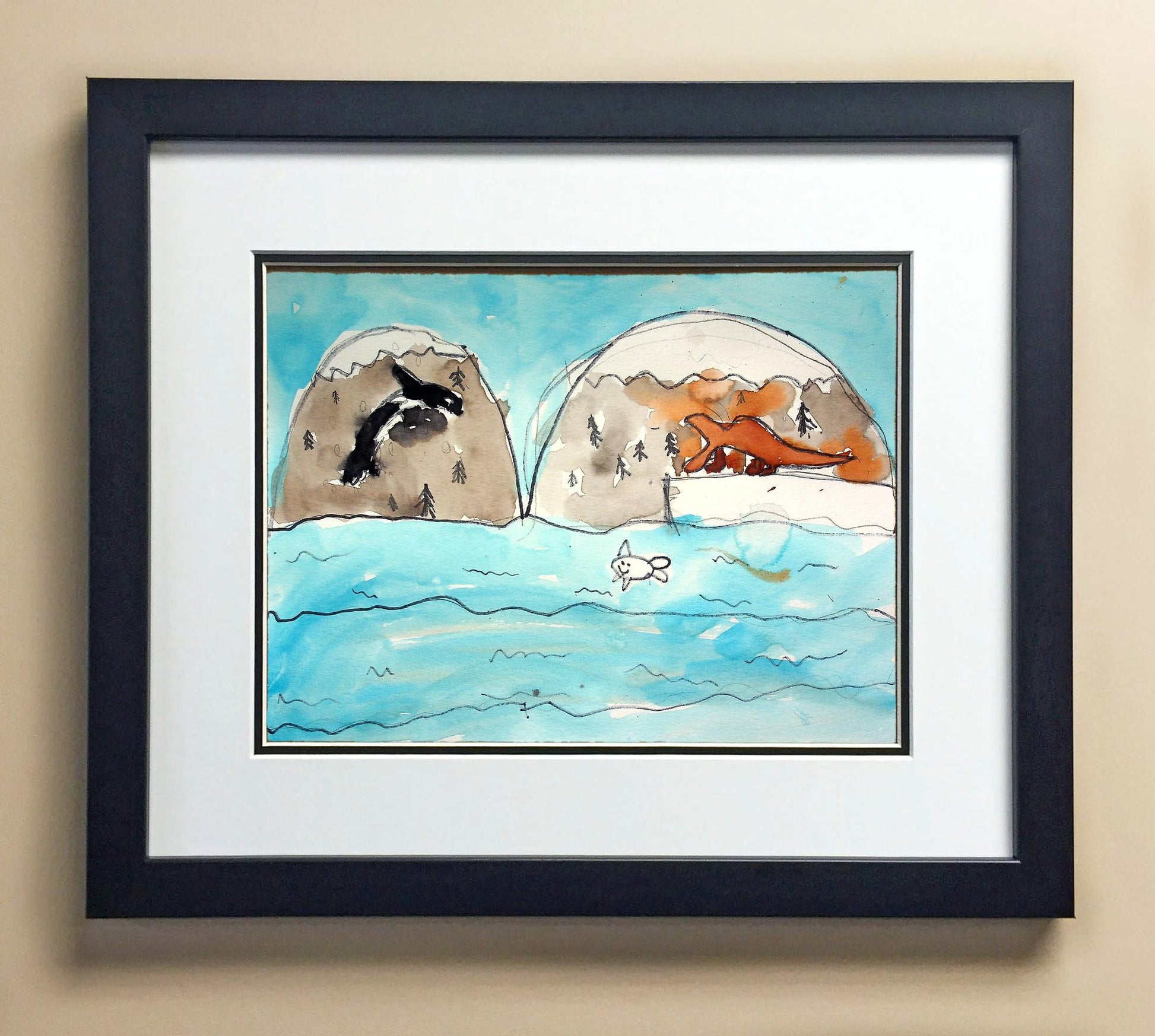 Included with the purchase is the Students Artwork, Frame, double matboard, shatter proof plexiglass, and a ready to hang backerboard with turnbuttons