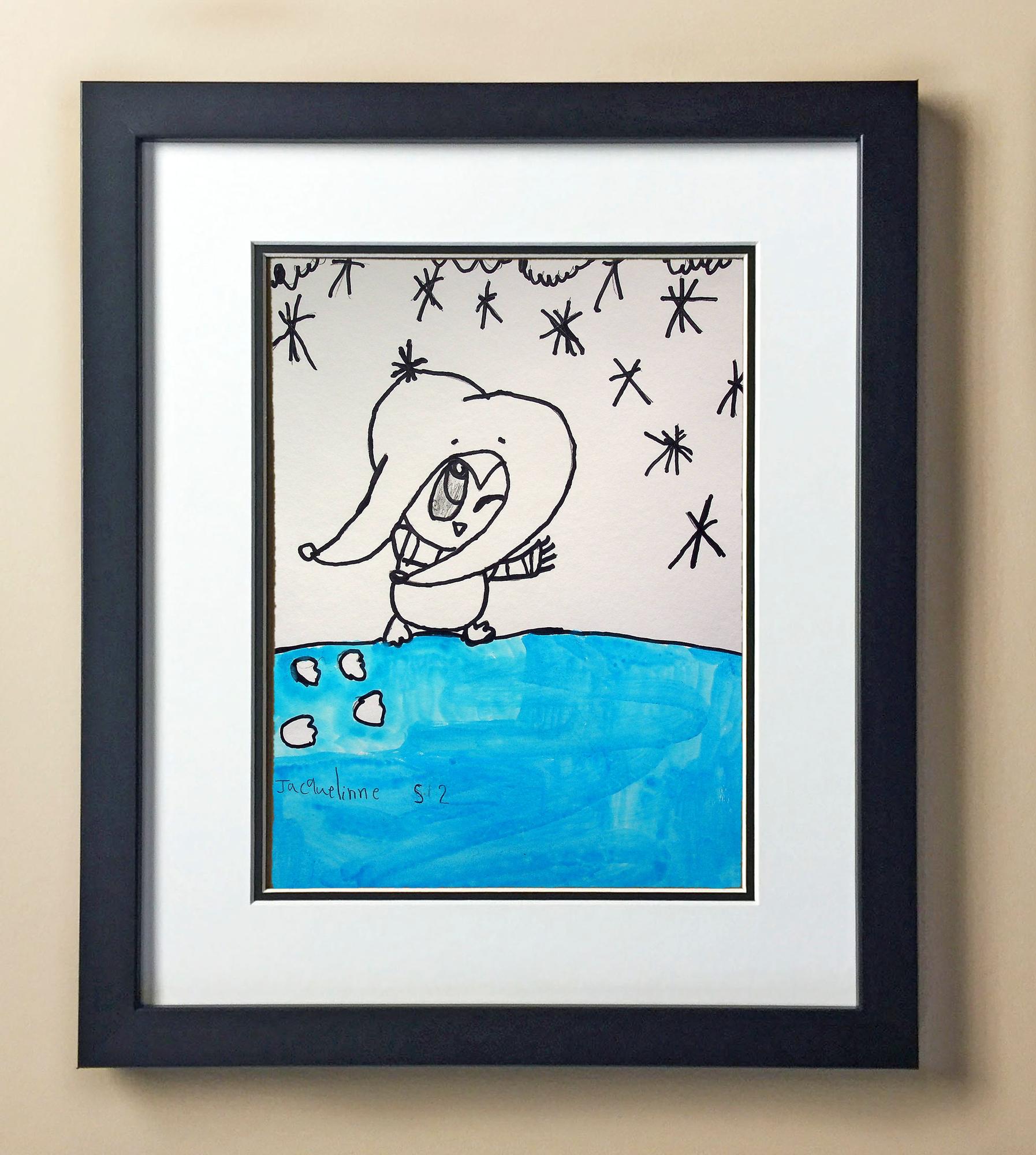 Included with the purchase is the Students Artwork, Frame, double matboard, shatter proof plexiglass, and a ready to hang backerboard with turnbuttons