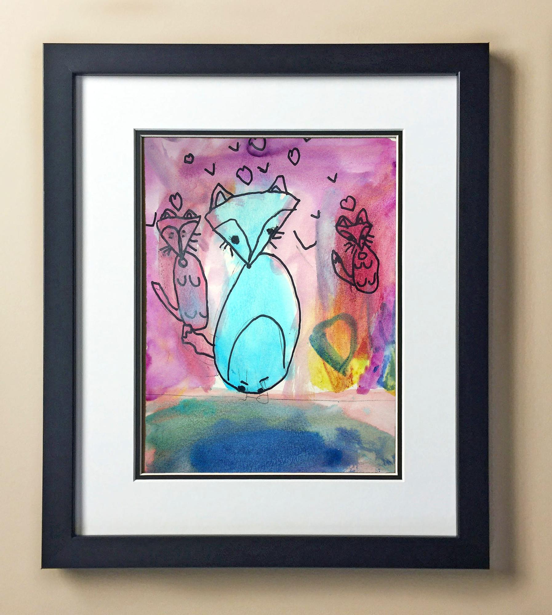 Included with the purchase is the Students Artwork, Frame, double matboard, shatter proof plexiglass, and a ready to hang backerboard with turnbuttons