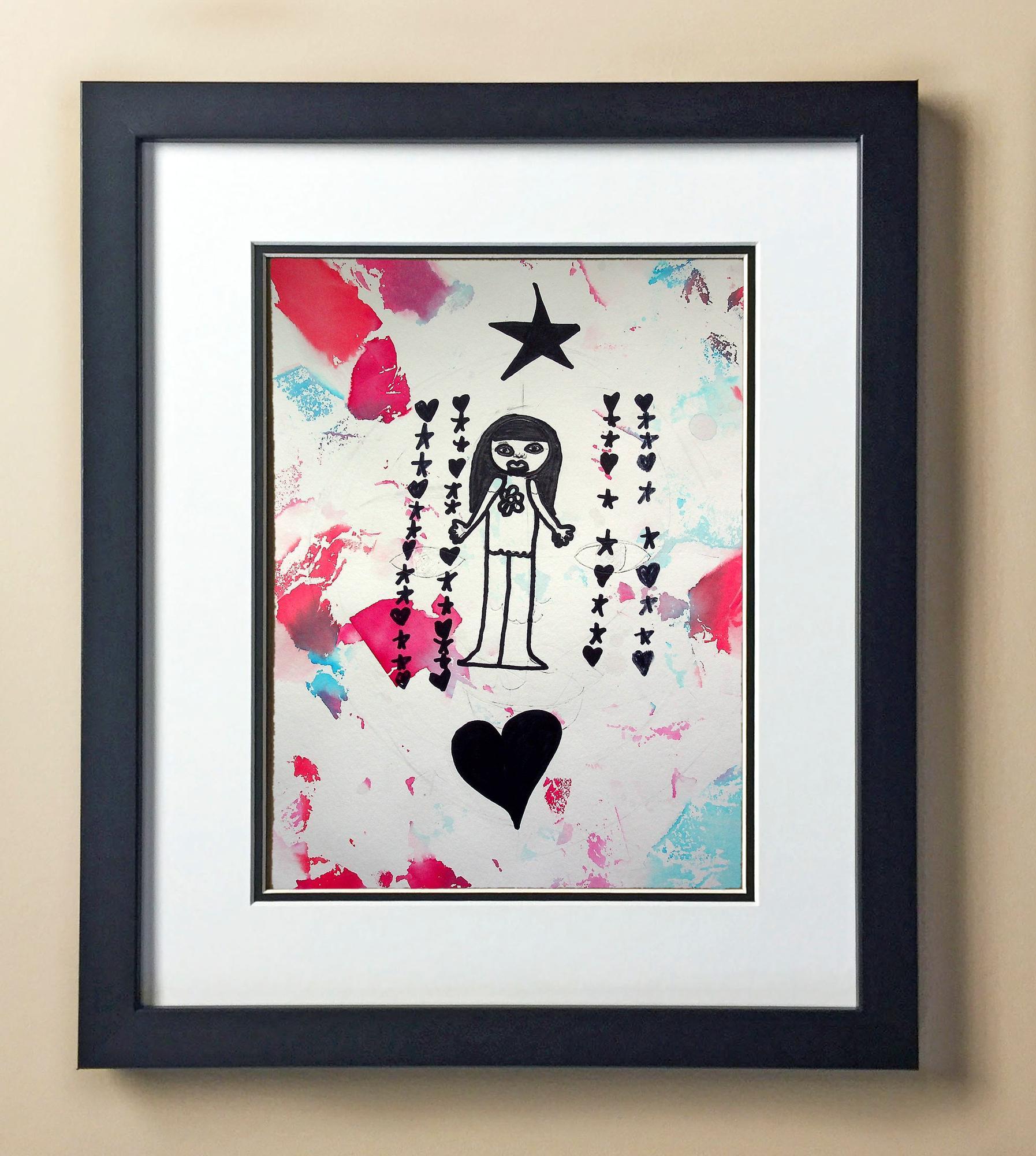 Included with the purchase is the Students Artwork, Frame, double matboard, shatter proof plexiglass, and a ready to hang backerboard with turnbuttons