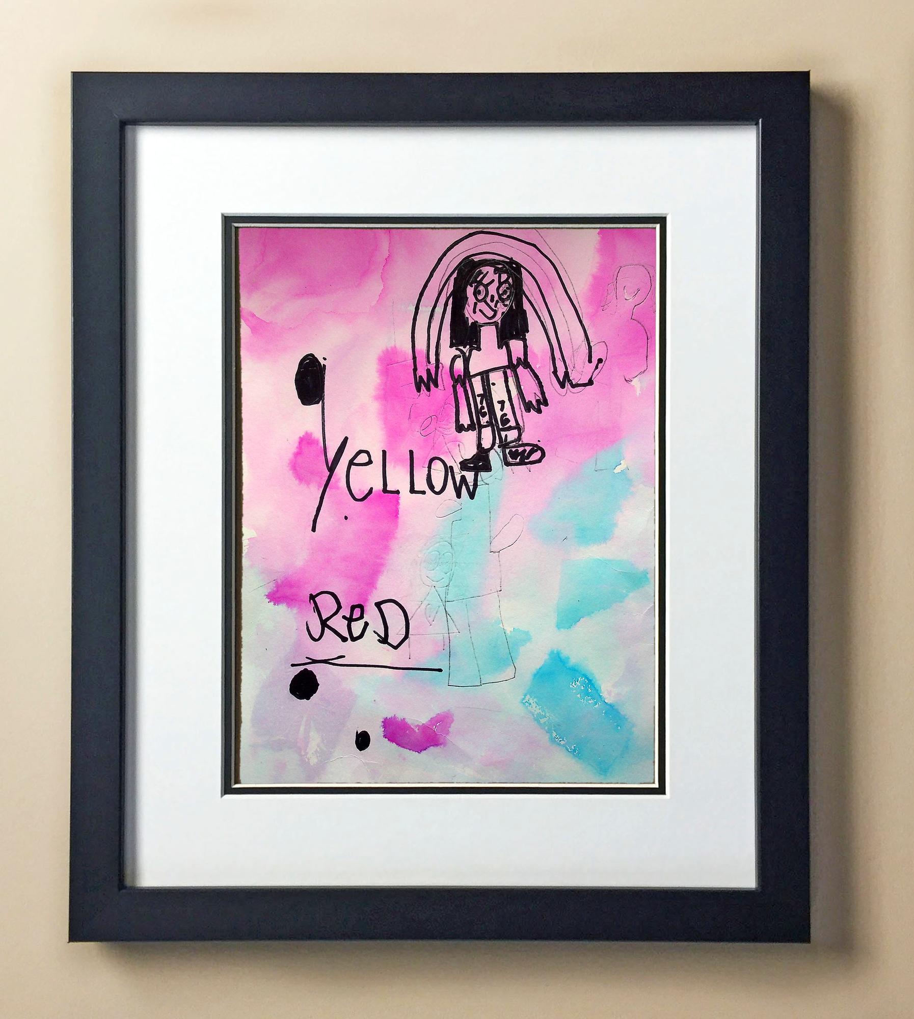 Included with the purchase is the Students Artwork, Frame, double matboard, shatter proof plexiglass, and a ready to hang backerboard with turnbuttons