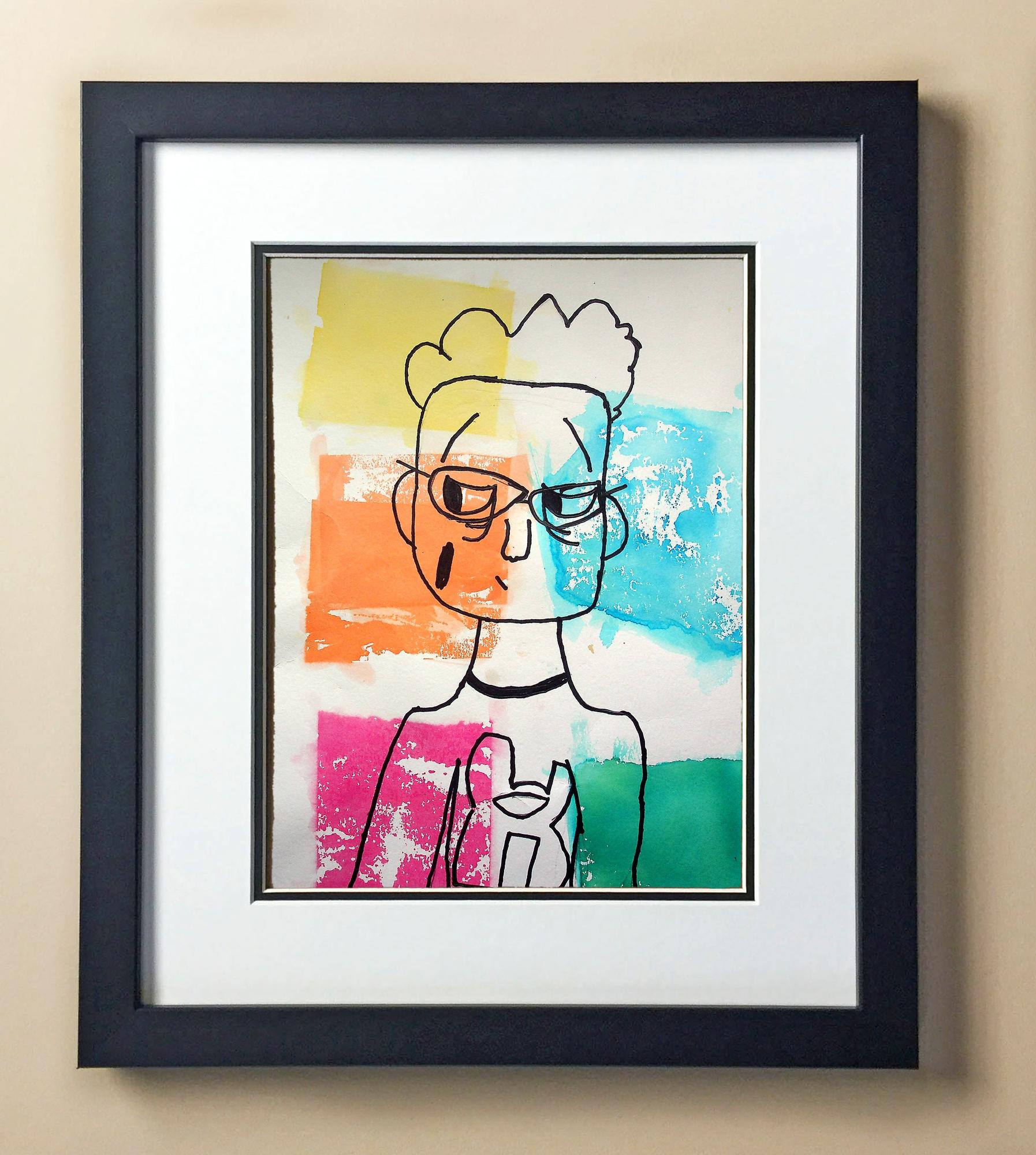 Included with the purchase is the Students Artwork, Frame, double matboard, shatter proof plexiglass, and a ready to hang backerboard with turnbuttons