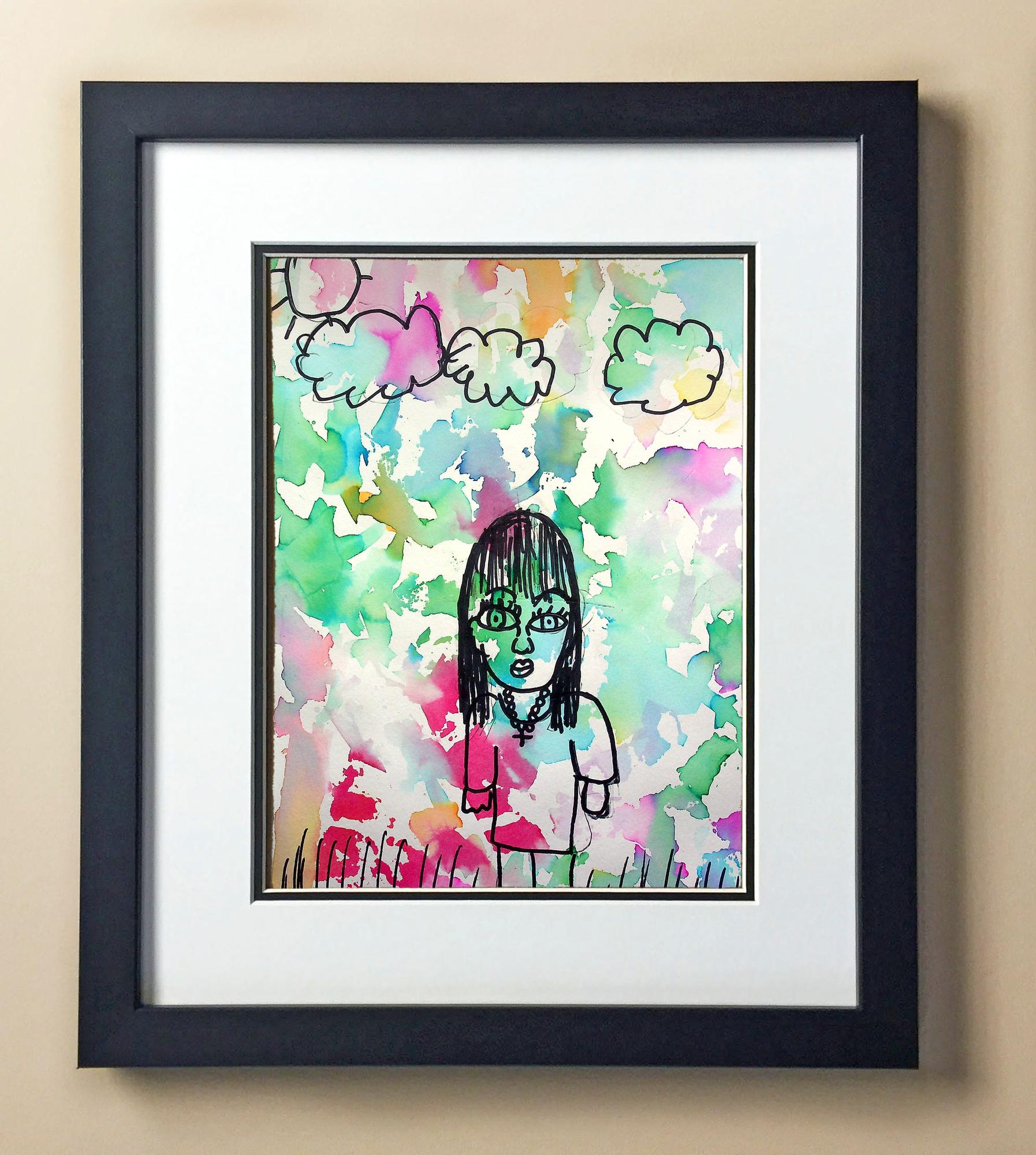Included with the purchase is the Students Artwork, Frame, double matboard, shatter proof plexiglass, and a ready to hang backerboard with turnbuttons
