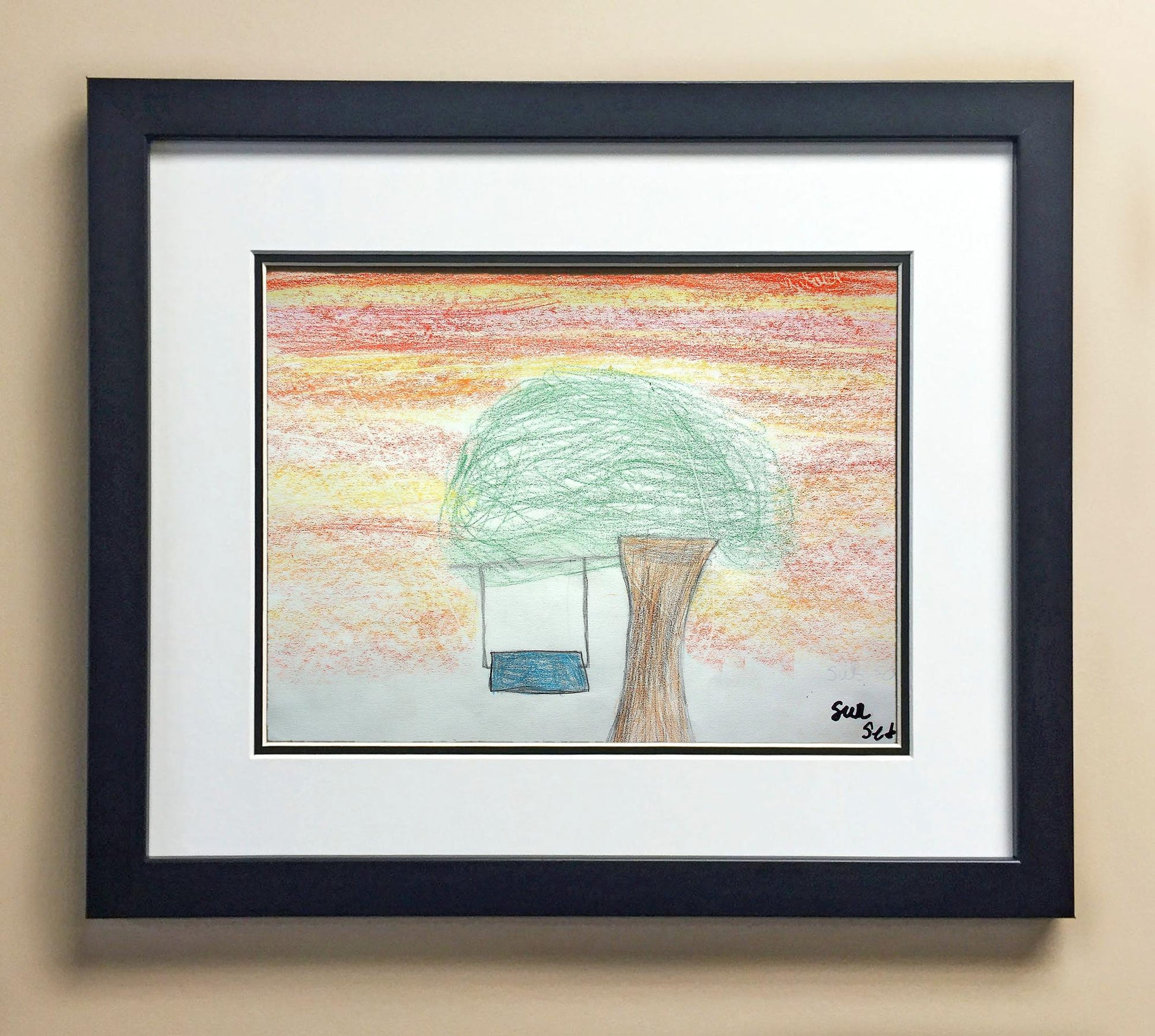 Included with the purchase is the Students Artwork, Frame, double matboard, shatter proof plexiglass, and a ready to hang backerboard with turnbuttons