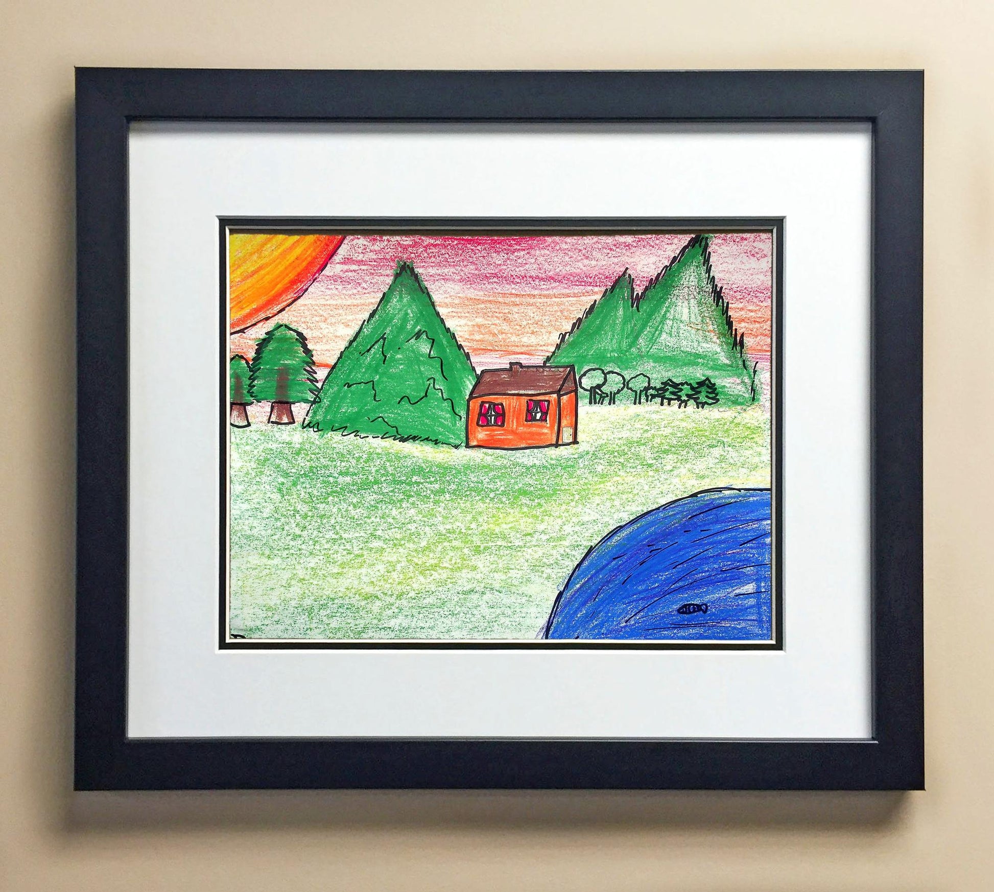 Included with the purchase is the Students Artwork, Frame, double matboard, shatter proof plexiglass, and a ready to hang backerboard with turnbuttons