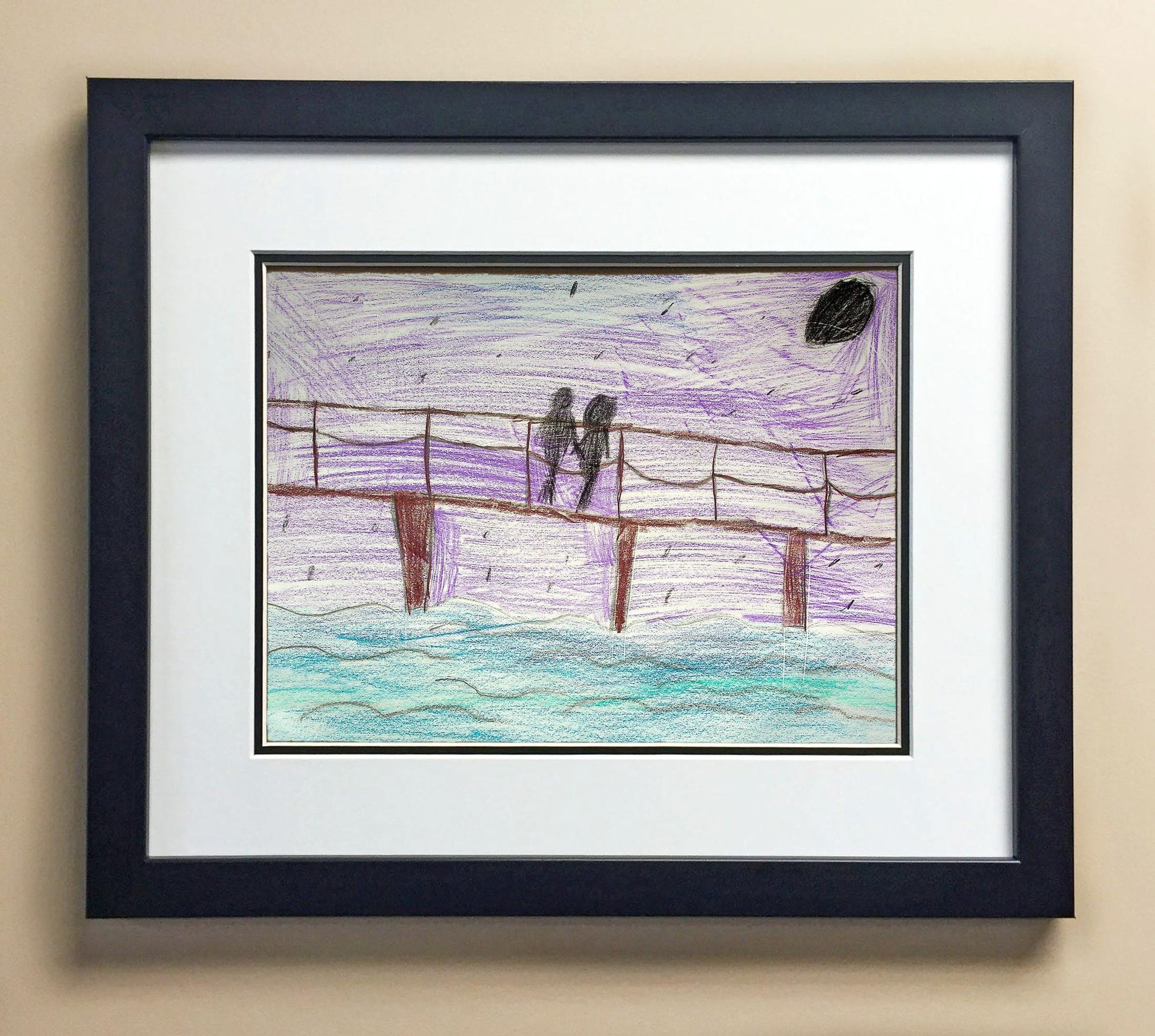 Included with the purchase is the Students Artwork, Frame, double matboard, shatter proof plexiglass, and a ready to hang backerboard with turnbuttons