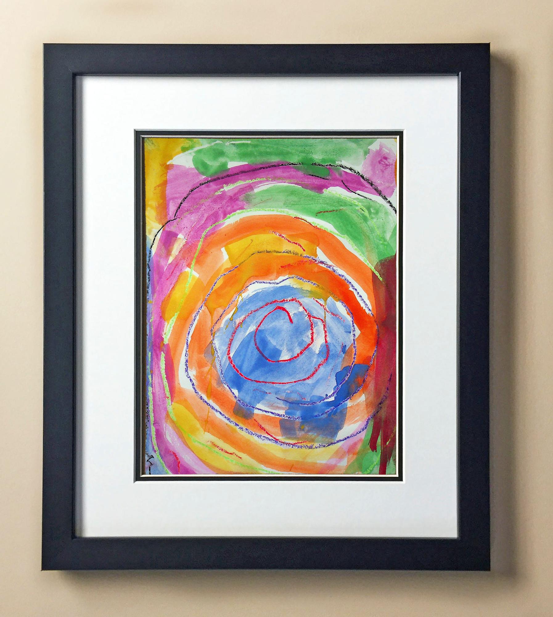 Included with the purchase is the Students Artwork, Frame, double matboard, shatter proof plexiglass, and a ready to hang backerboard with turnbuttons