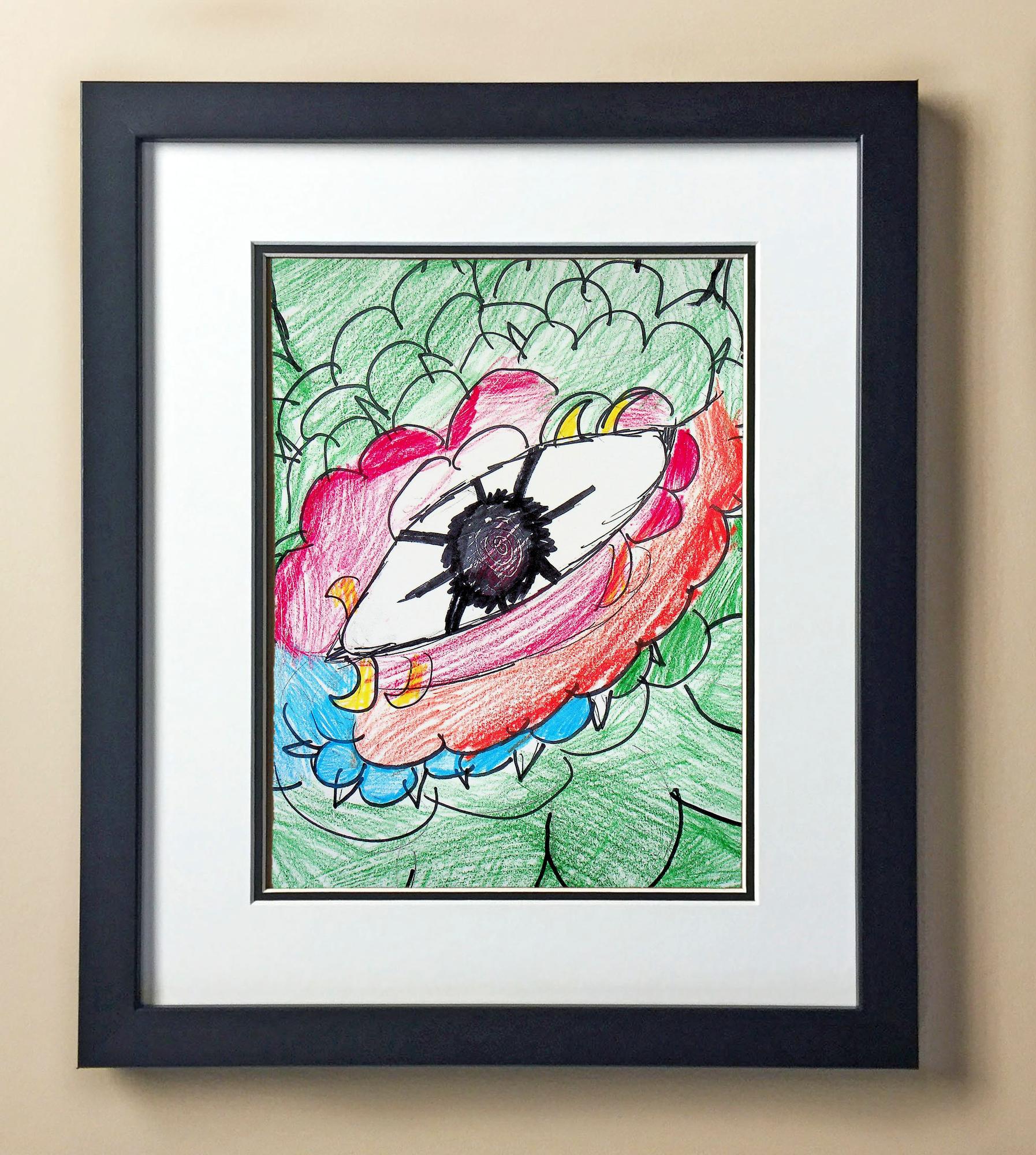Included with the purchase is the Students Artwork, Frame, double matboard, shatter proof plexiglass, and a ready to hang backerboard with turnbuttons