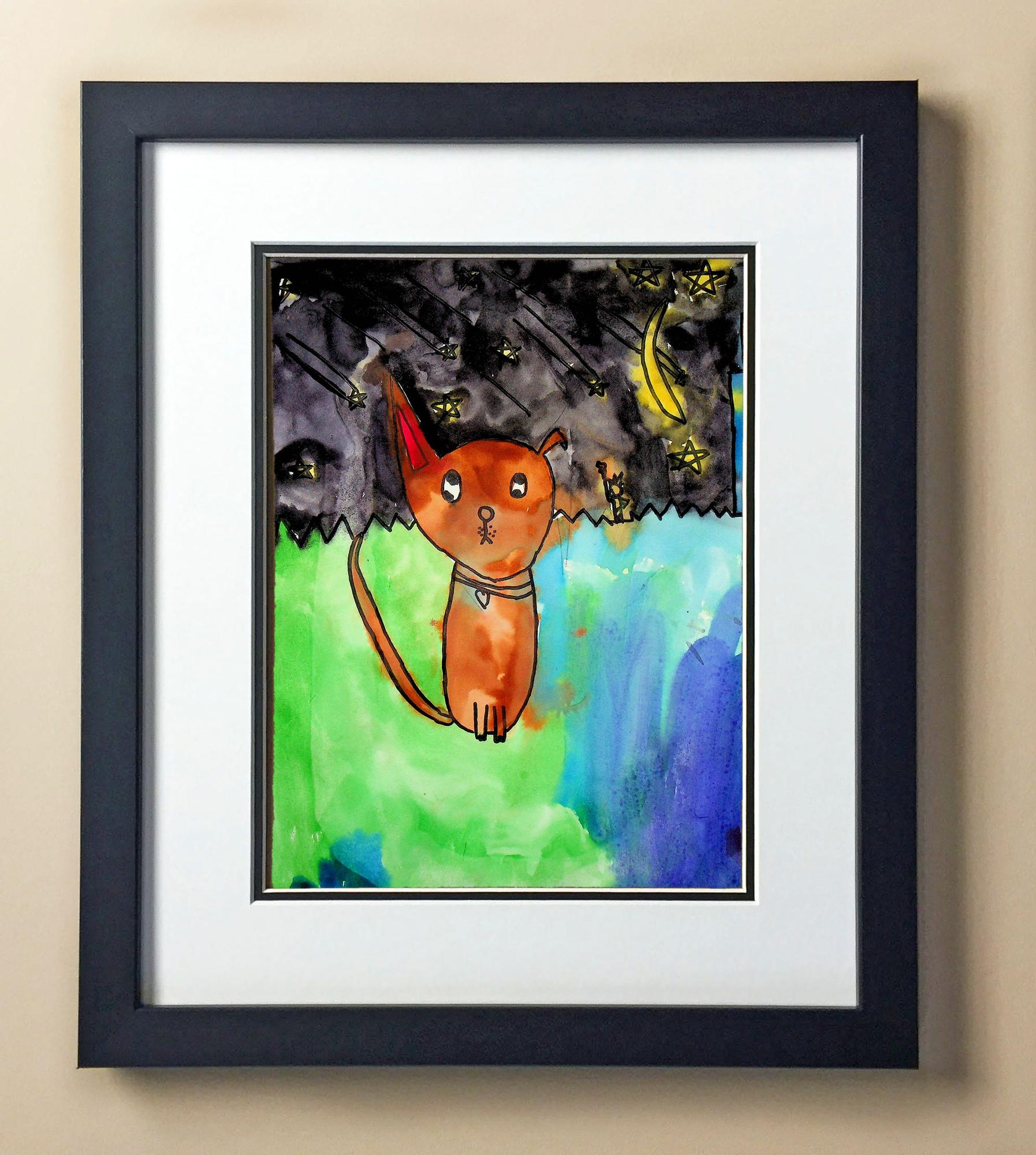 Included with the purchase is the Students Artwork, Frame, double matboard, shatter proof plexiglass, and a ready to hang backerboard with turnbuttons