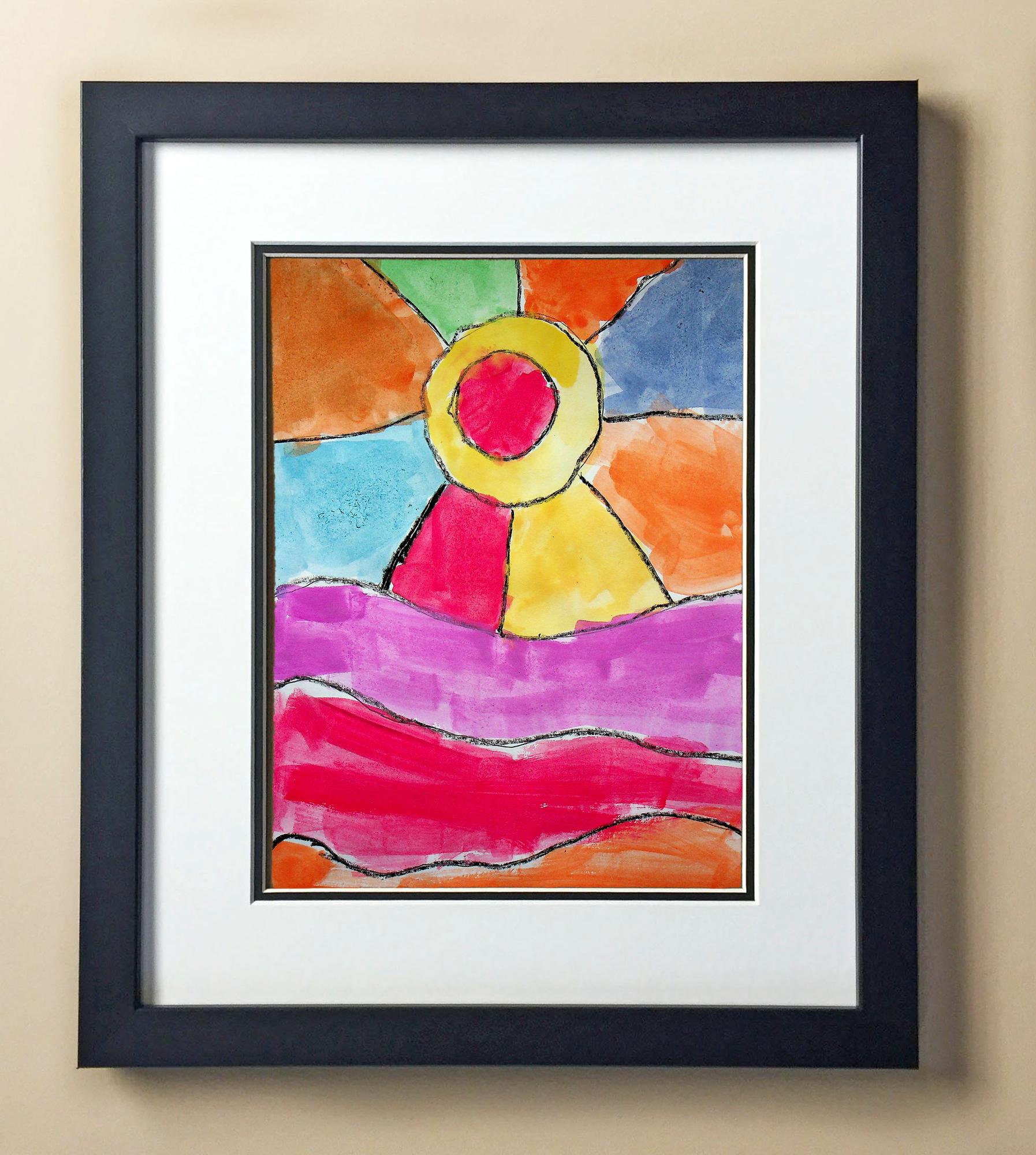 Included with the purchase is the Students Artwork, Frame, double matboard, shatter proof plexiglass, and a ready to hang backerboard with turnbuttons
